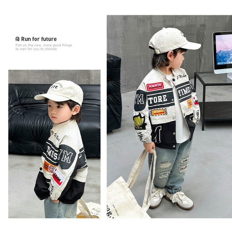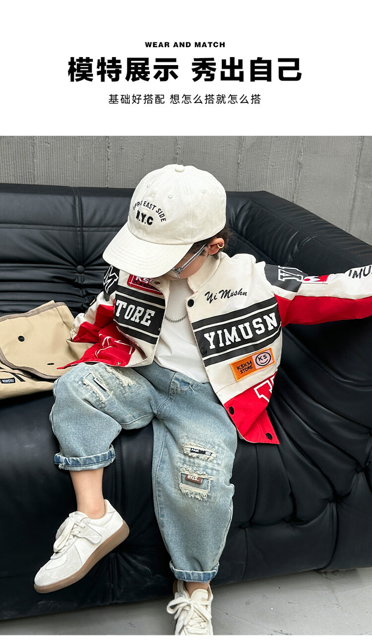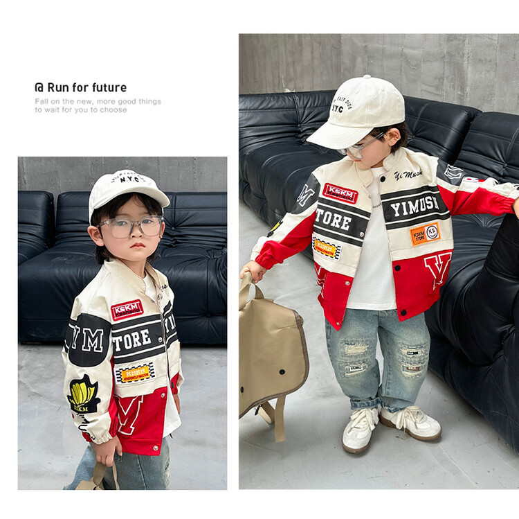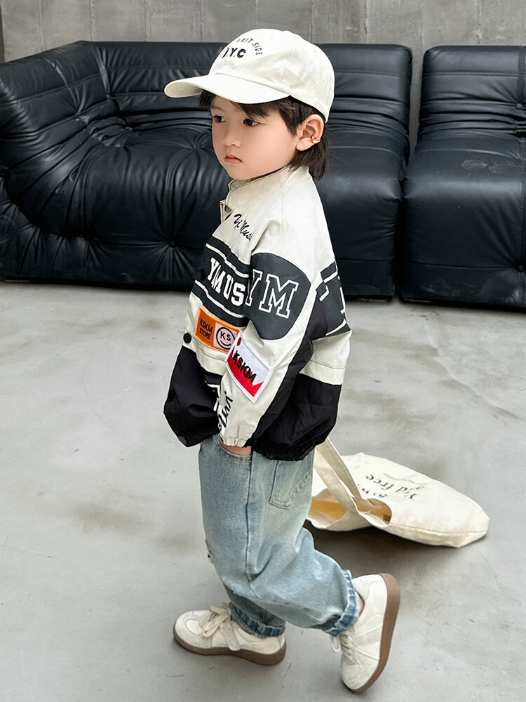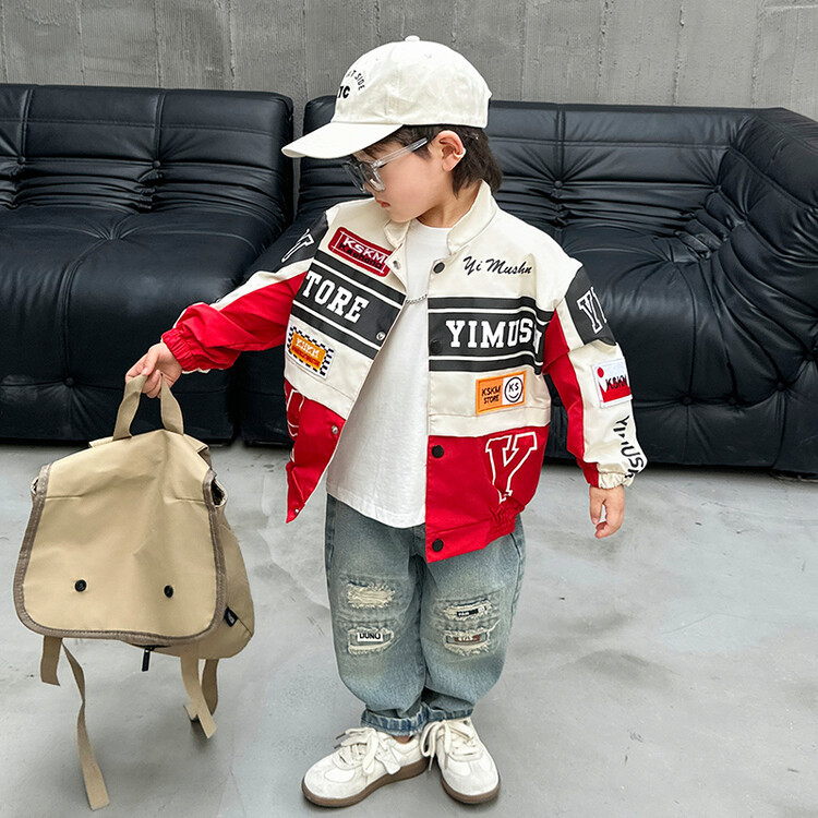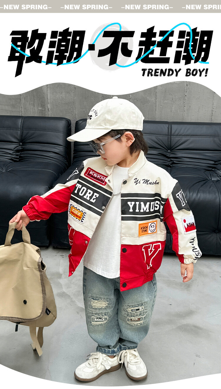 소년 오토바이 자켓 2024 봄과 가을 새로운 아이들의 잘 생긴 유행 재킷 미디어와 어린 아이들의 서양식 탑스토어 가기