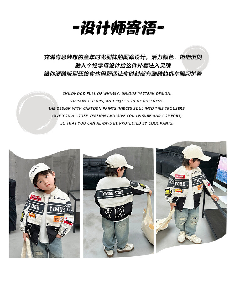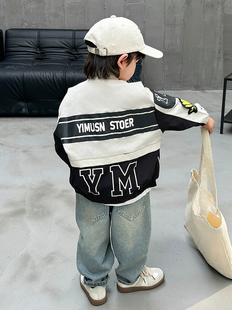 소년 오토바이 자켓 2024 봄과 가을 새로운 아이들의 잘 생긴 유행 재킷 미디어와 어린 아이들의 서양식 탑