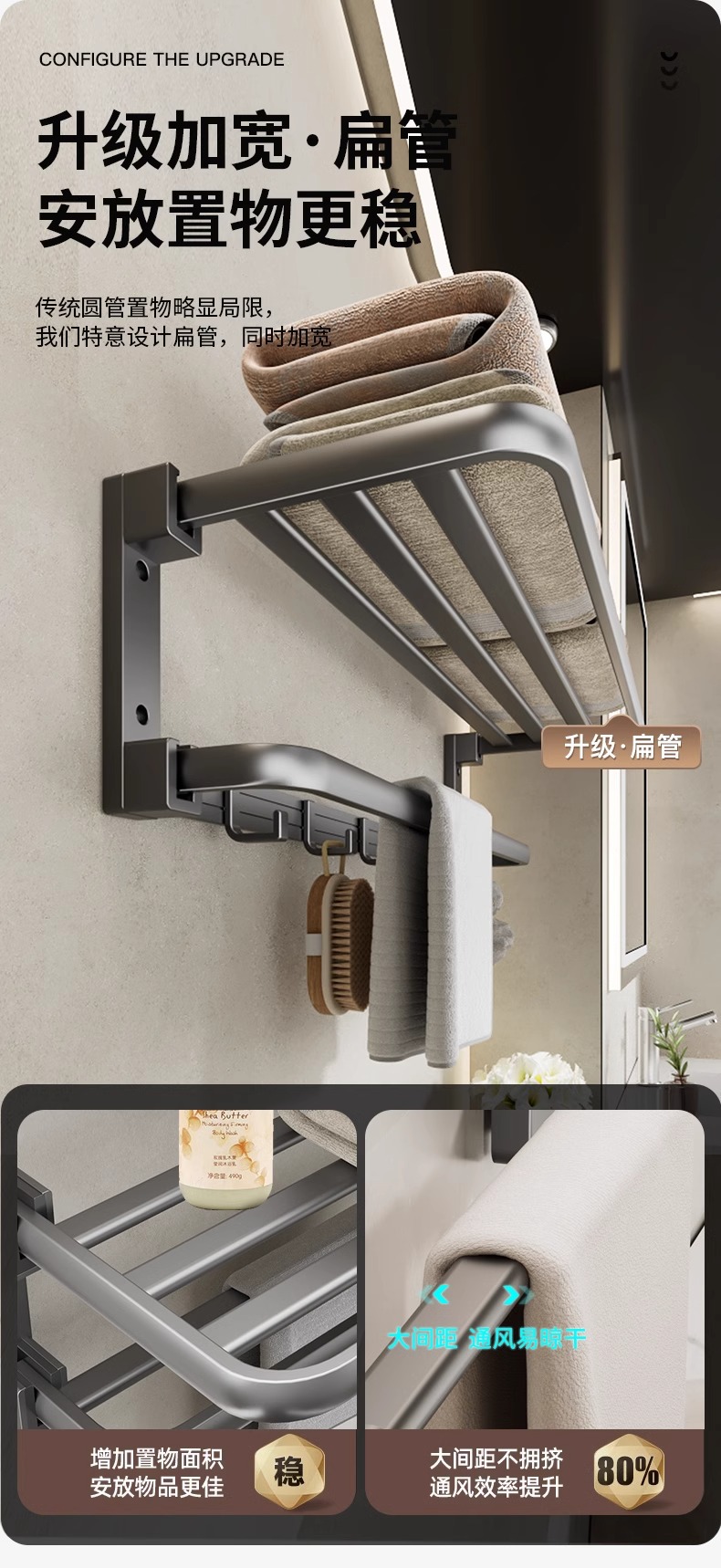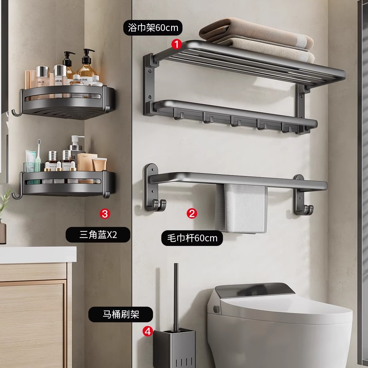 총 회색 공간 알루미늄 수건 랙 펀치 프리 욕실 보관 랙 욕실 선반 통합 수건 랙 화장실 욕실