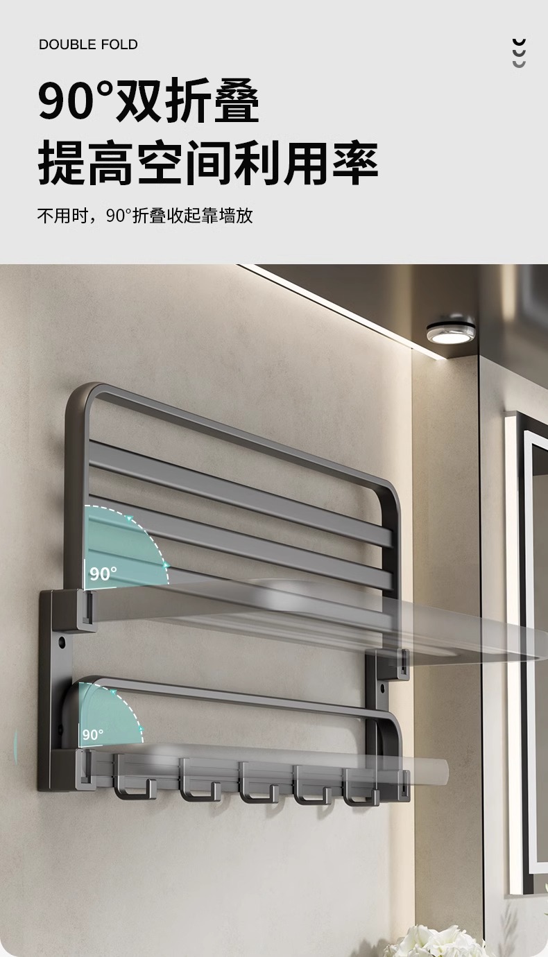 • 총 Gray-60cm 타월 랙 [업그레이드 더블 폴딩]]