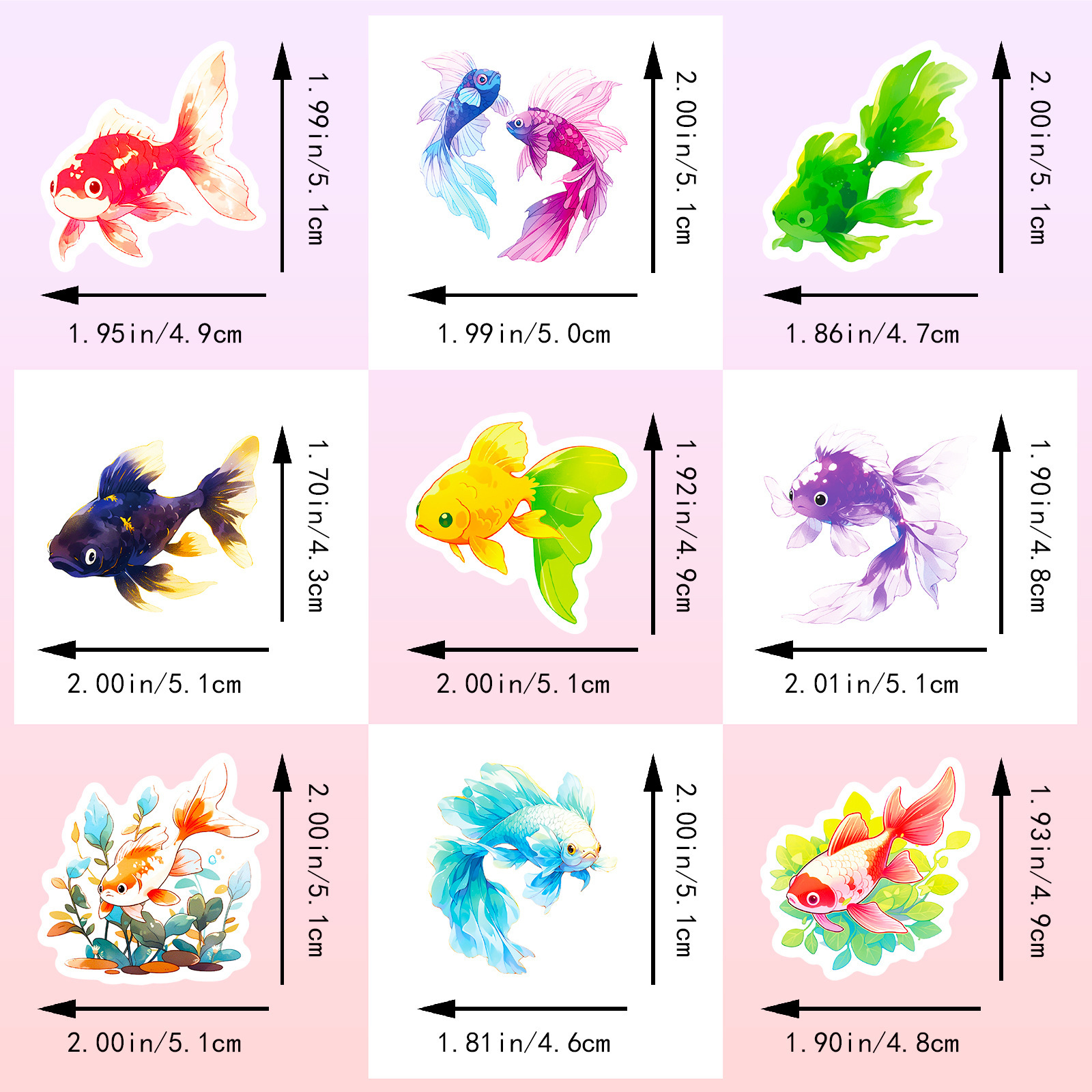 [한 번의 가격] 다채로운 물고기 스티커 50개 국경 간 열대 해저 바다 귀여운 만화 금붕어 낙서 스티커