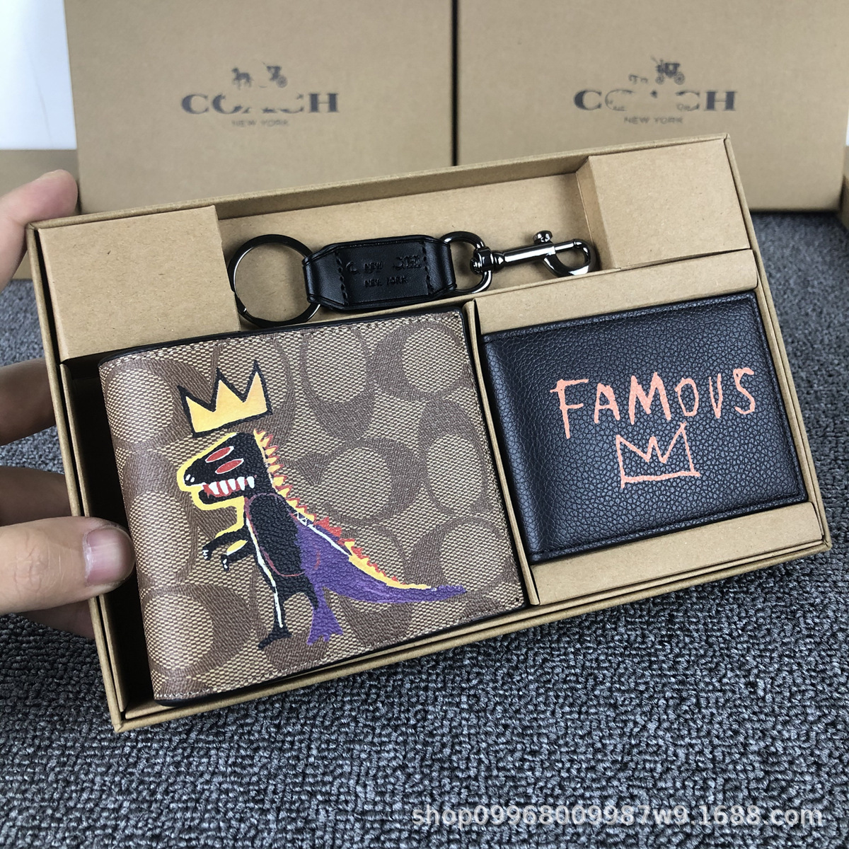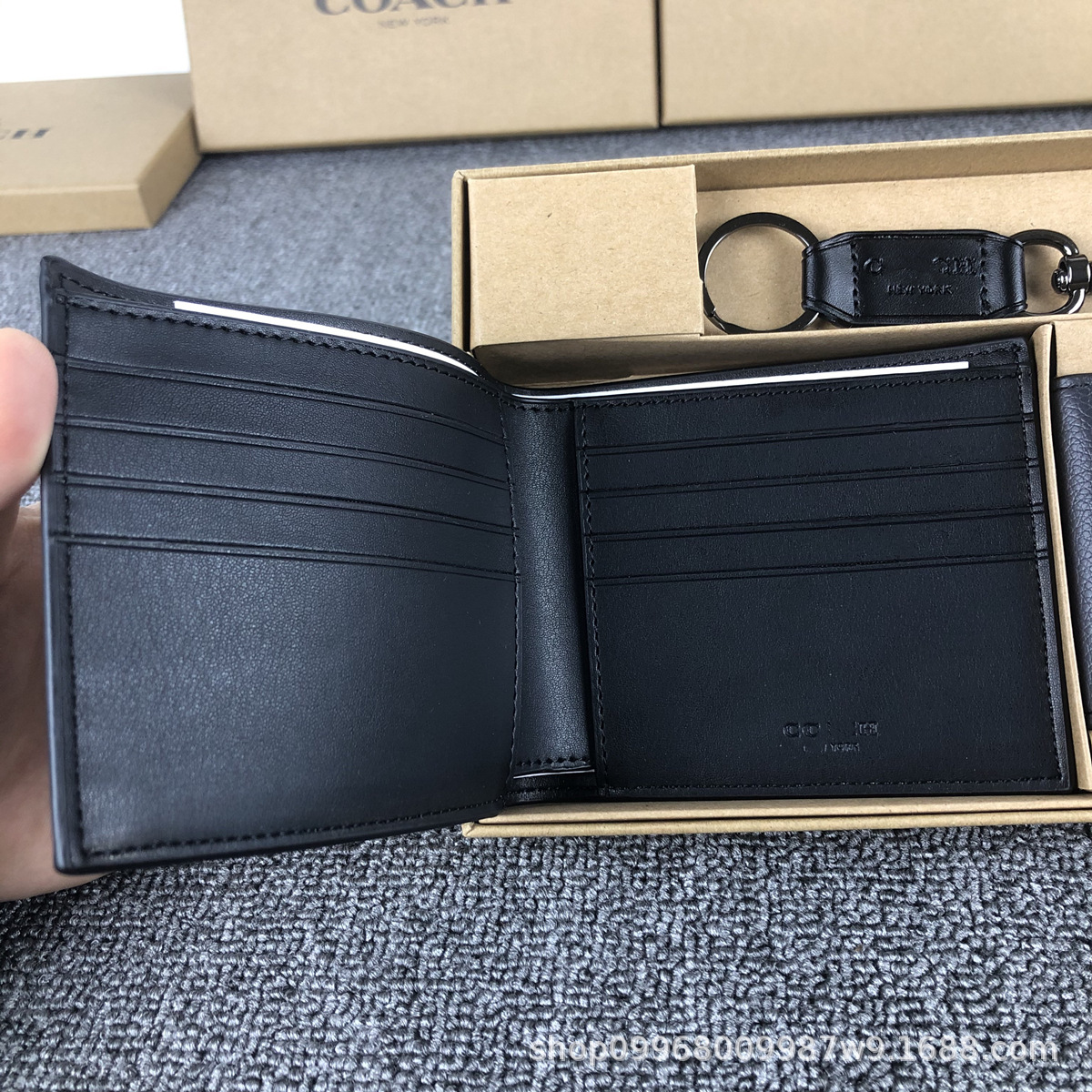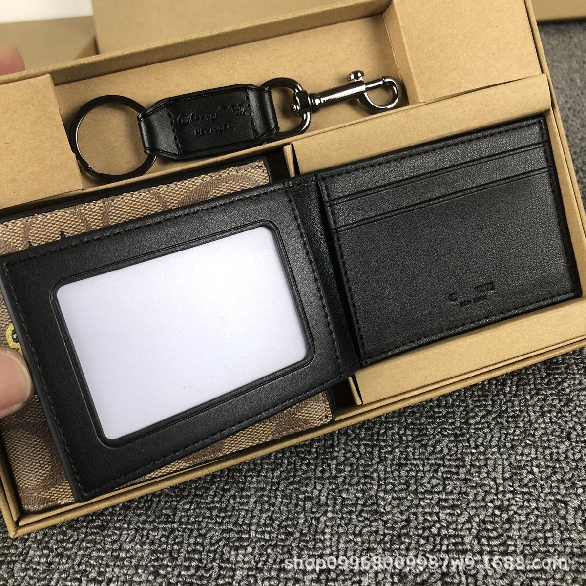 공장 재고 C 남성 짧은 비즈니스 캐주얼 소 가죽 지갑 카드 홀더 키 체인 3 피스 카톤 포장스토어 가기