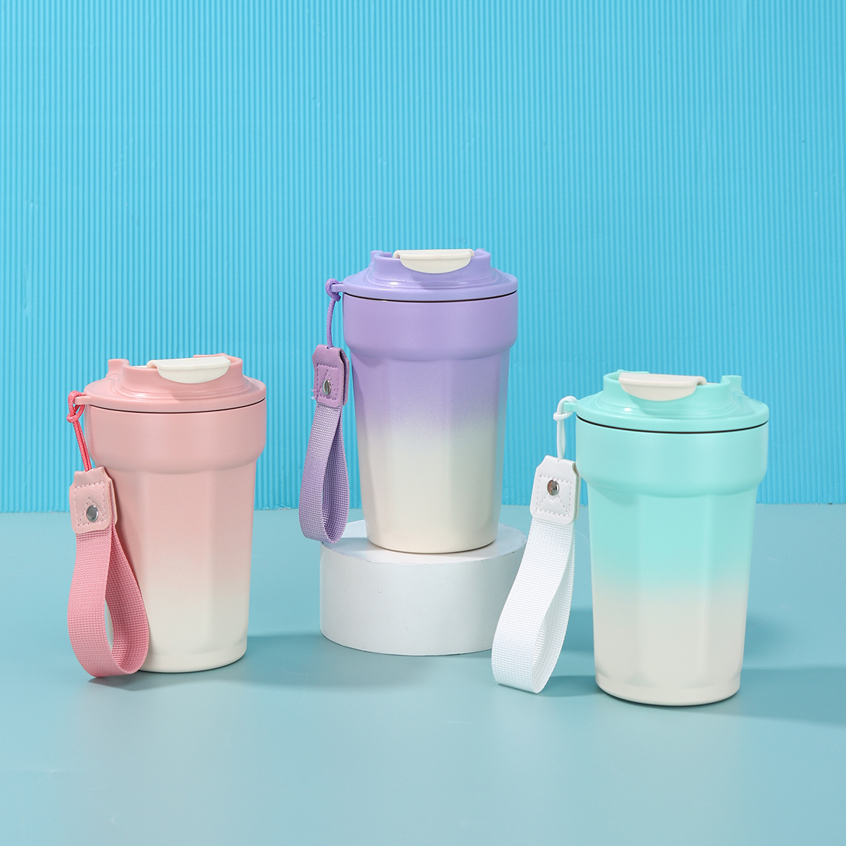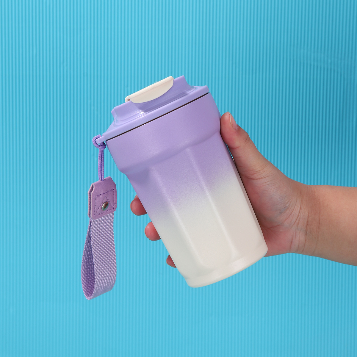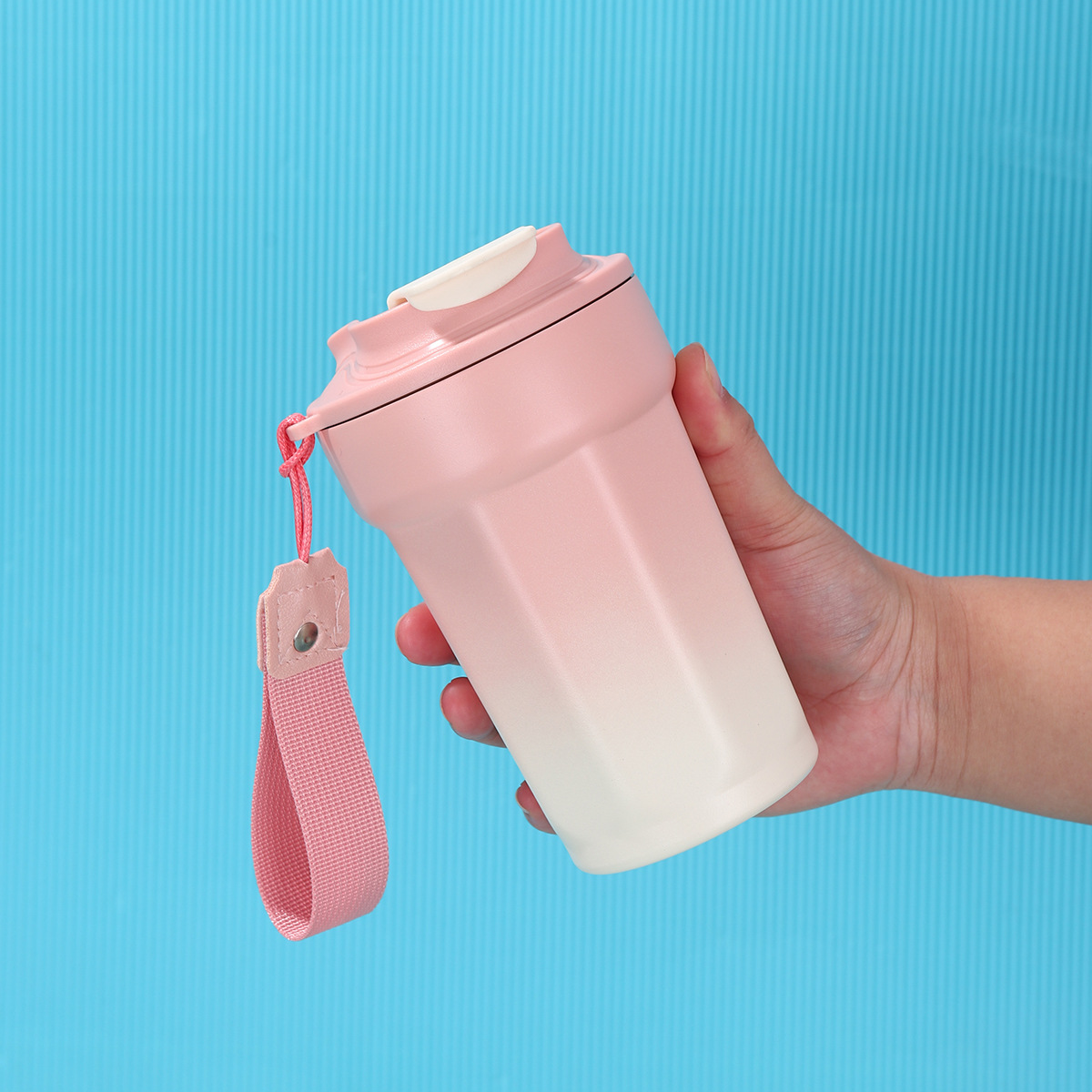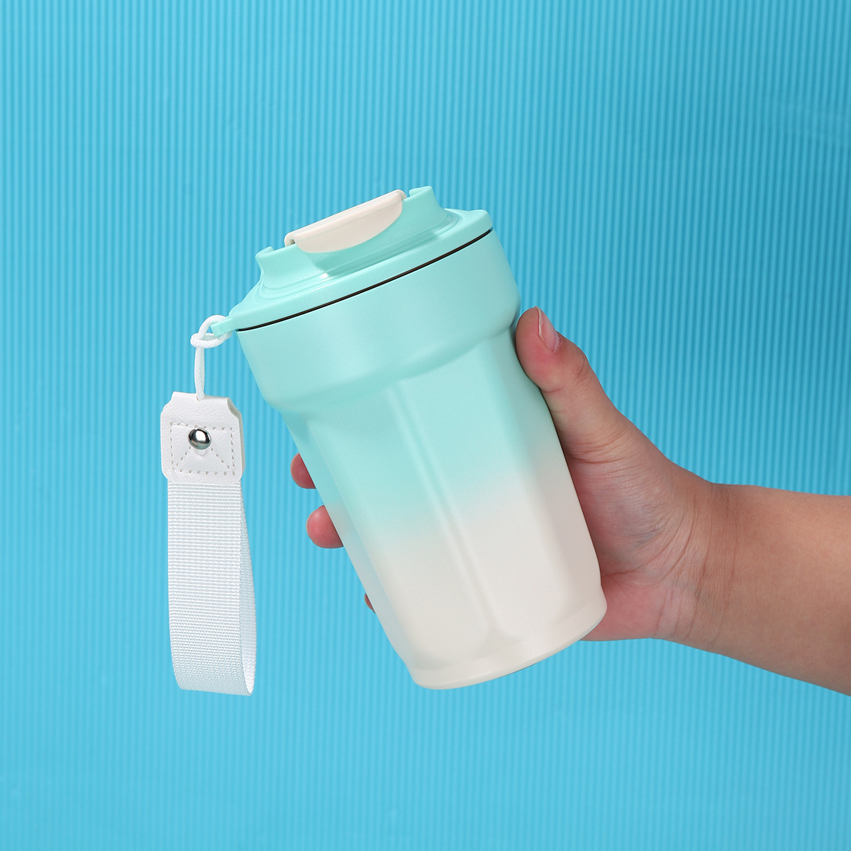 창조적 인 316 스테인레스 스틸 더블 음료 팔각형 커피 컵 야외 휴대용 끈 컵 더블 진공 보온병 컵스토어 가기