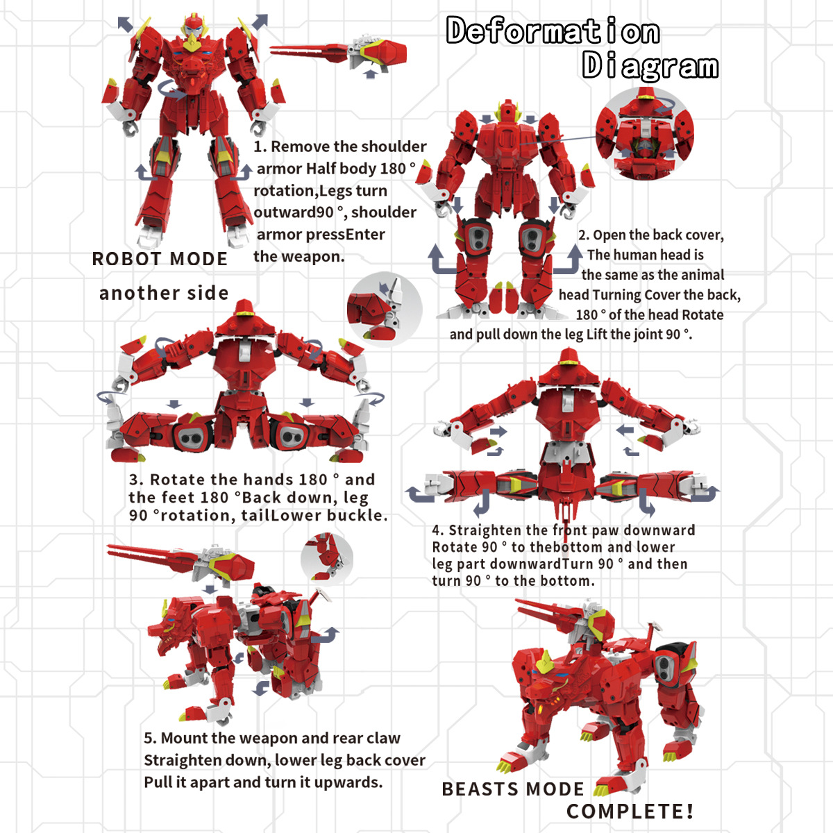 Spirit Beast Man 로봇 변형 어린이 놀이 콘크리트 사자 오토바이 조합 King Kong 조립 소년 교육 장난감 국경스토어 가기