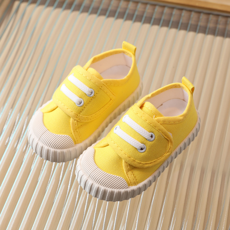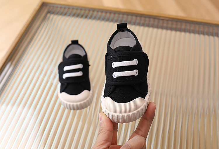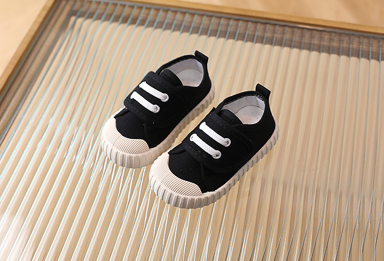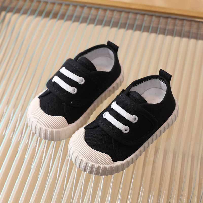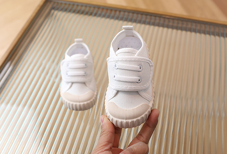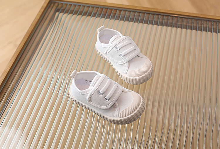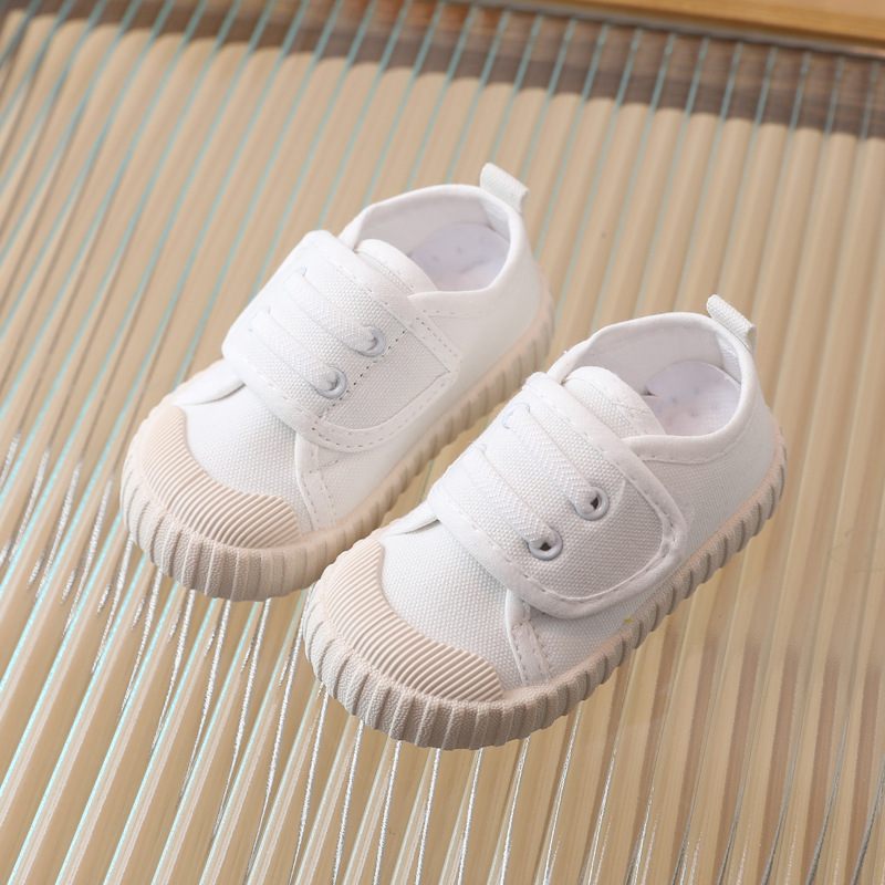 어린이 캐주얼 신발 캔버스 소프트 밑창 스니커즈 로우 탑 봄과 가을 벨크로 화이트 신발 소년 소녀 싱글 레이어 신발 유아용 신발