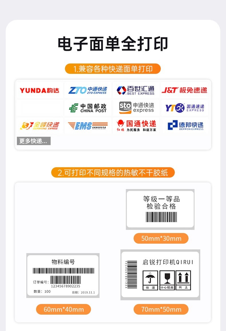 Qirui 310C 산업용 고속 프린터 410s 전자 표면 시트 접착 스티커 바코드 프린터스토어 가기