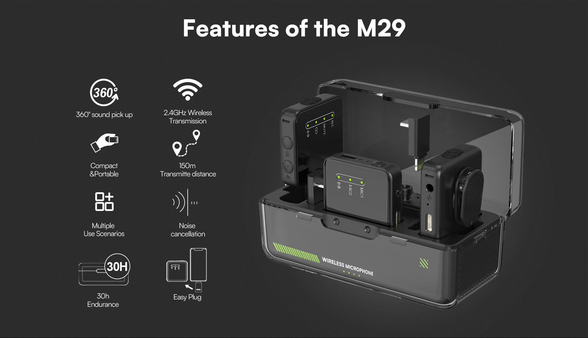 국경 간 개인 모델 폭발 M29 무선 칼라 클립 마이크 휴대 전화 라이브 사운드 카드 전체 모니터 블루투스 마이크 세트