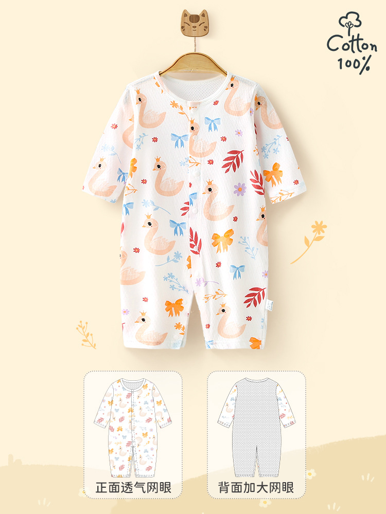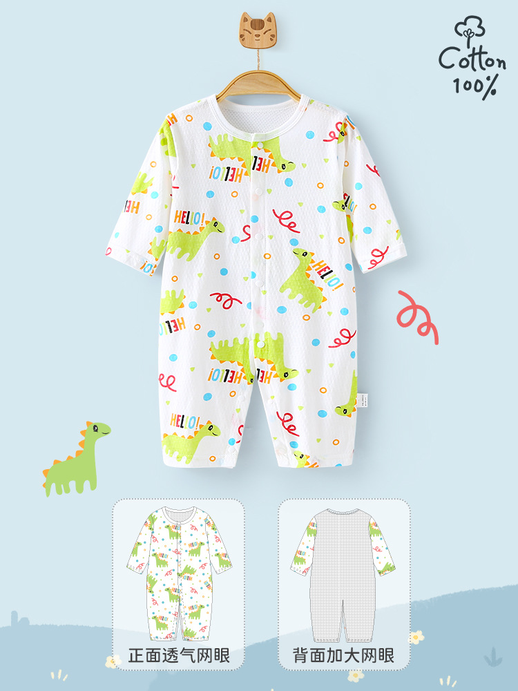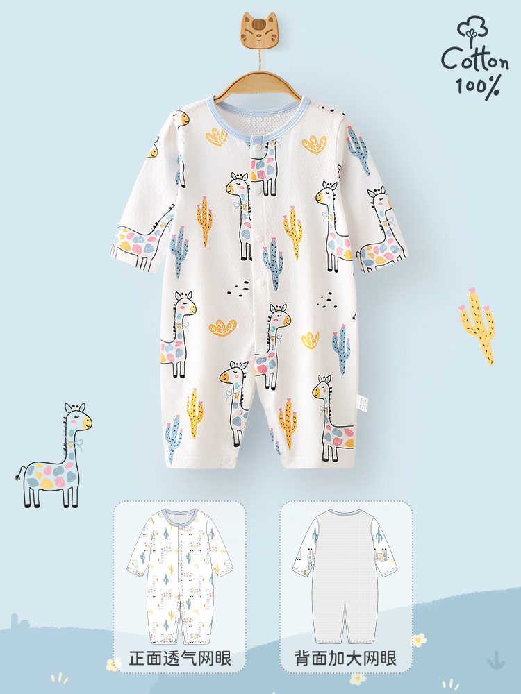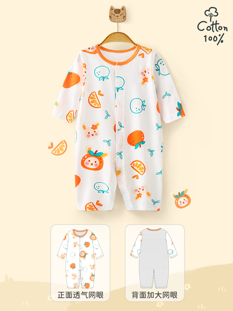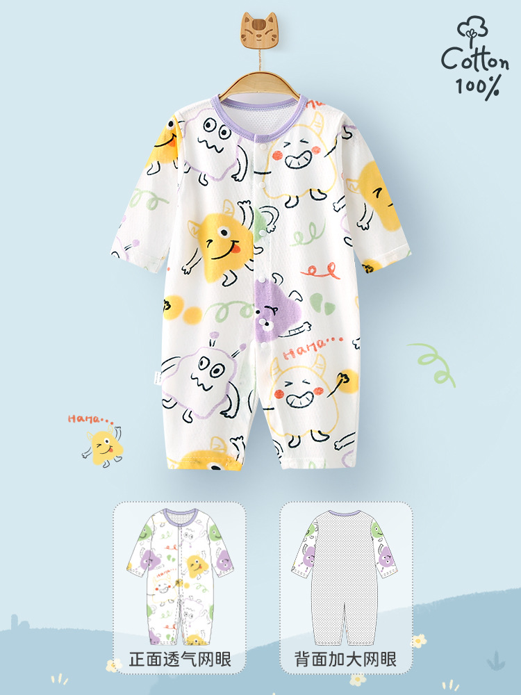 여름 얇은 아기 점프 수트 아기 AB 메쉬 통기성 옷 신생아 긴 소매 에어컨 옷 아동복
