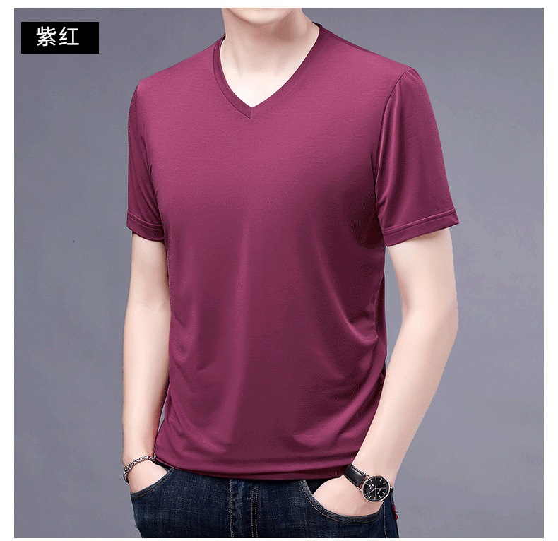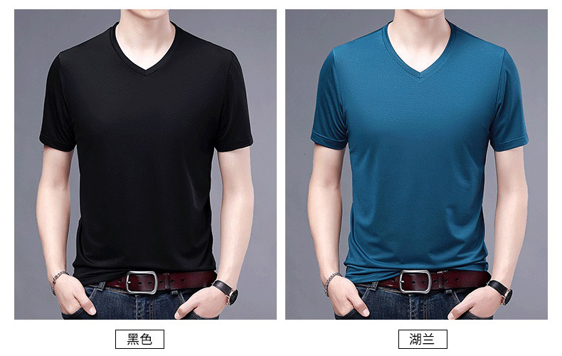 젊고 중년의 V 넥 반팔 티셔츠 남성용 여름 느슨한 신속 건조 올 매치 스포츠 야외 티셔츠 탑 남성