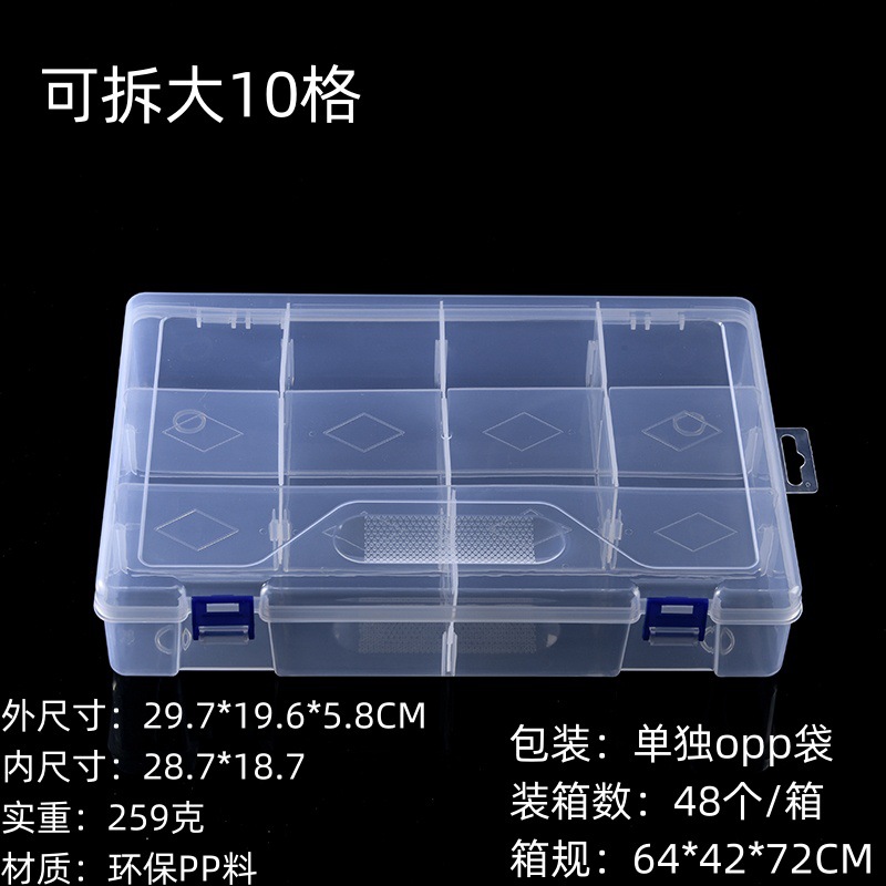 투명 플라스틱 대형 10 그리드 분리 가능한 보석 저장 상자 전자 부품 액세서리 상자 분류 보석 상자 부품 상자