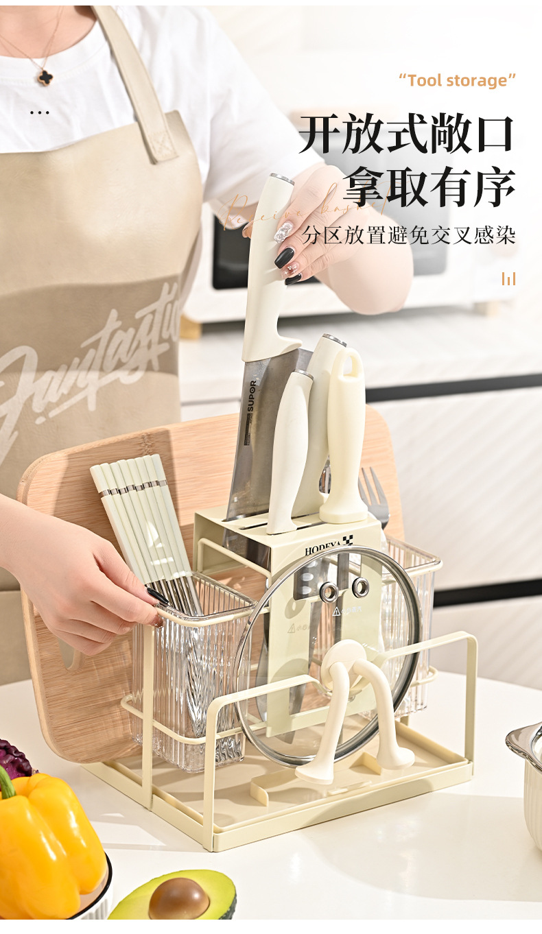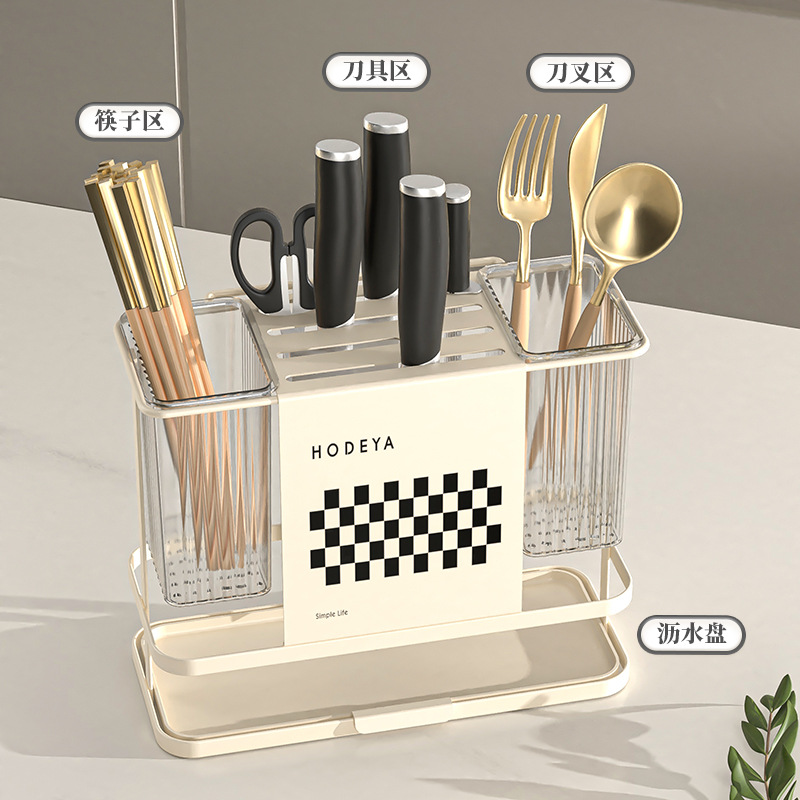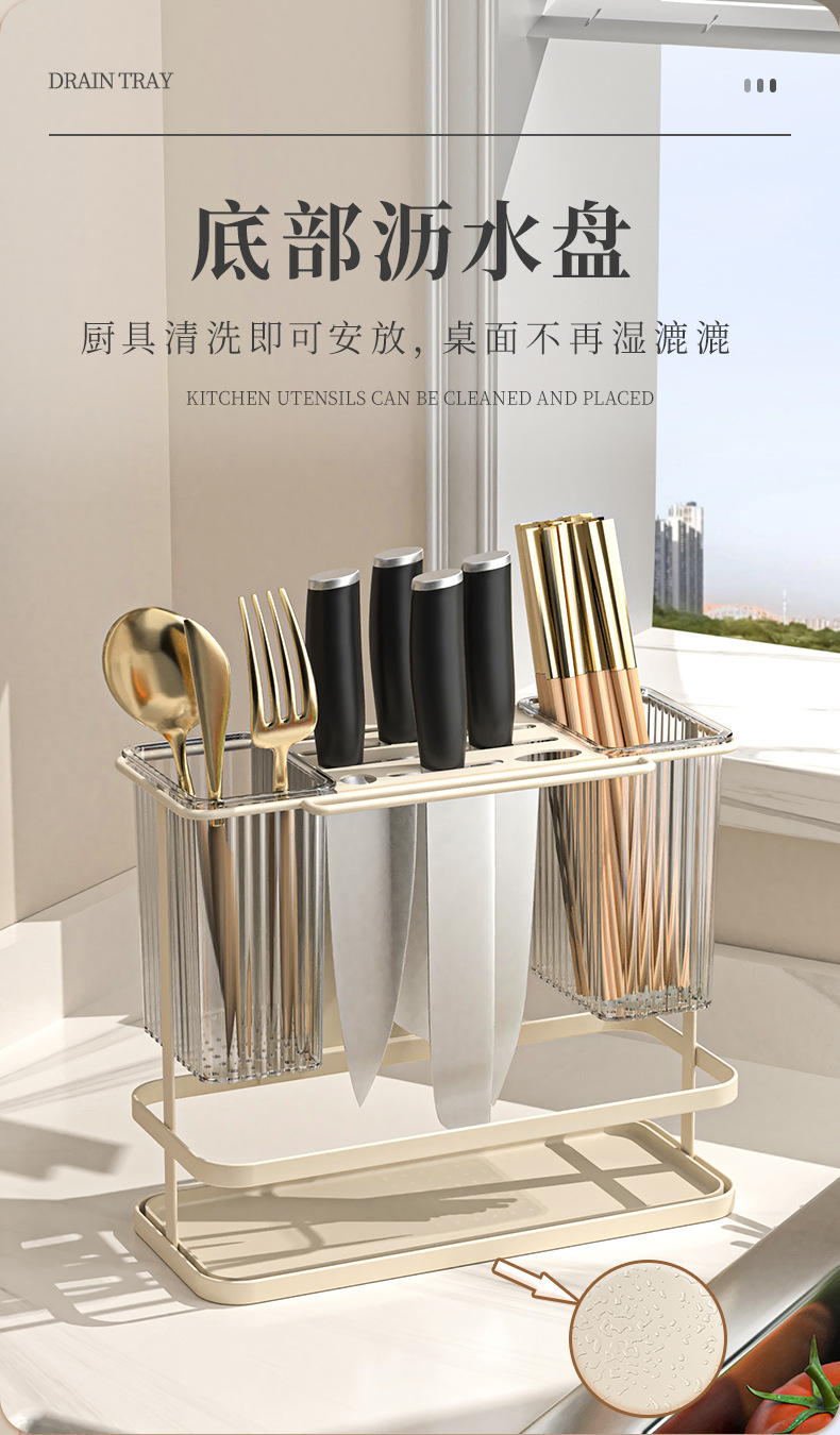 경량 고급 젓가락통 다기능 일체형 수납 선반 주방 칼꽂이 배수 칼꽂이 벽걸이형 무타공 젓가락통