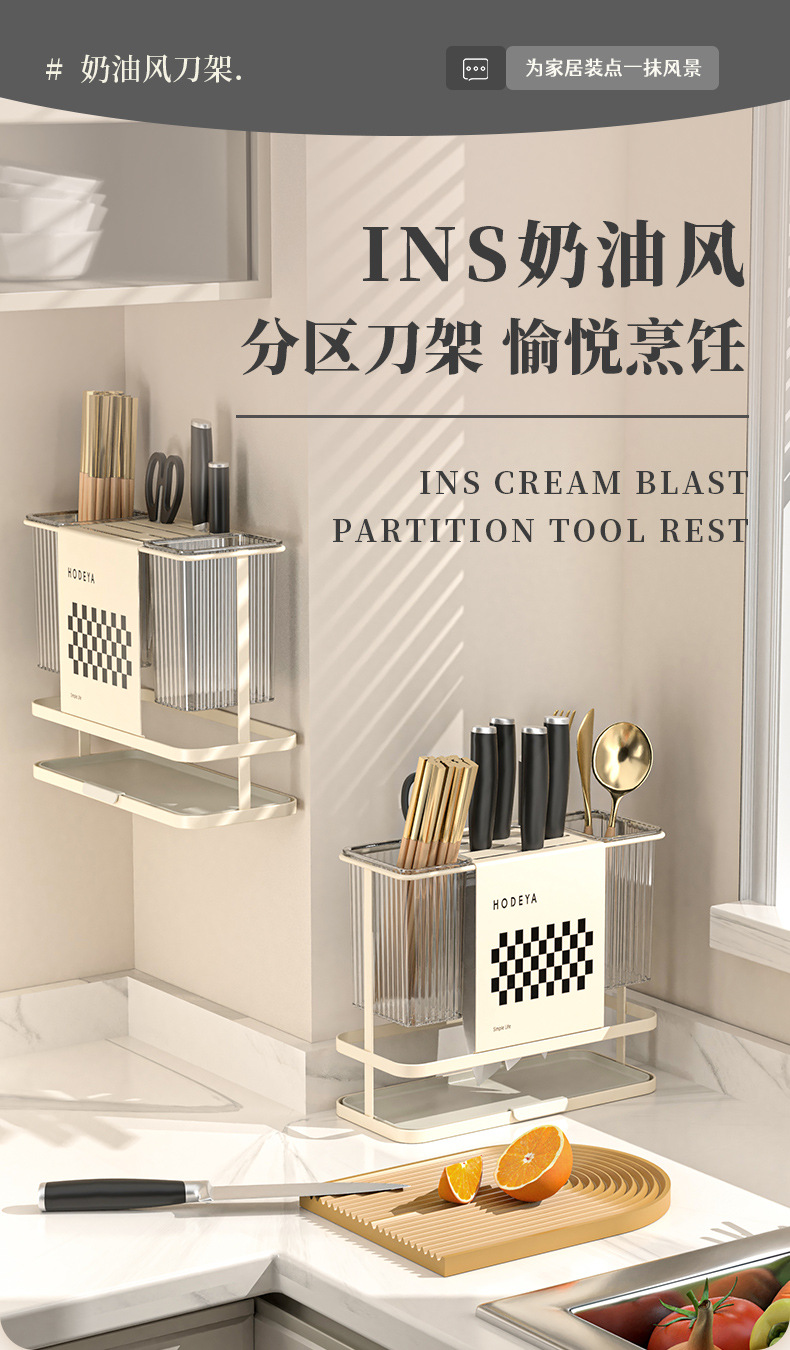 경량 고급 젓가락통 다기능 일체형 수납 선반 주방 칼꽂이 배수 칼꽂이 벽걸이형 무타공 젓가락통스토어 가기
