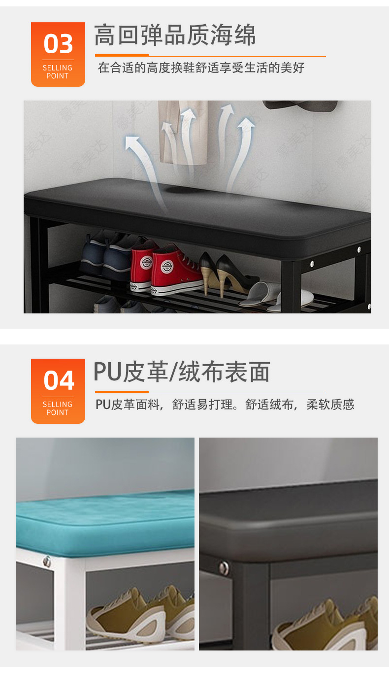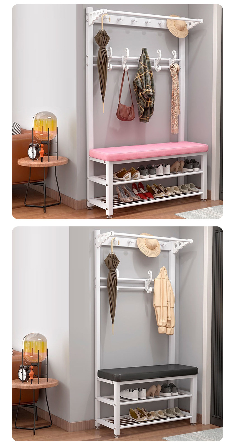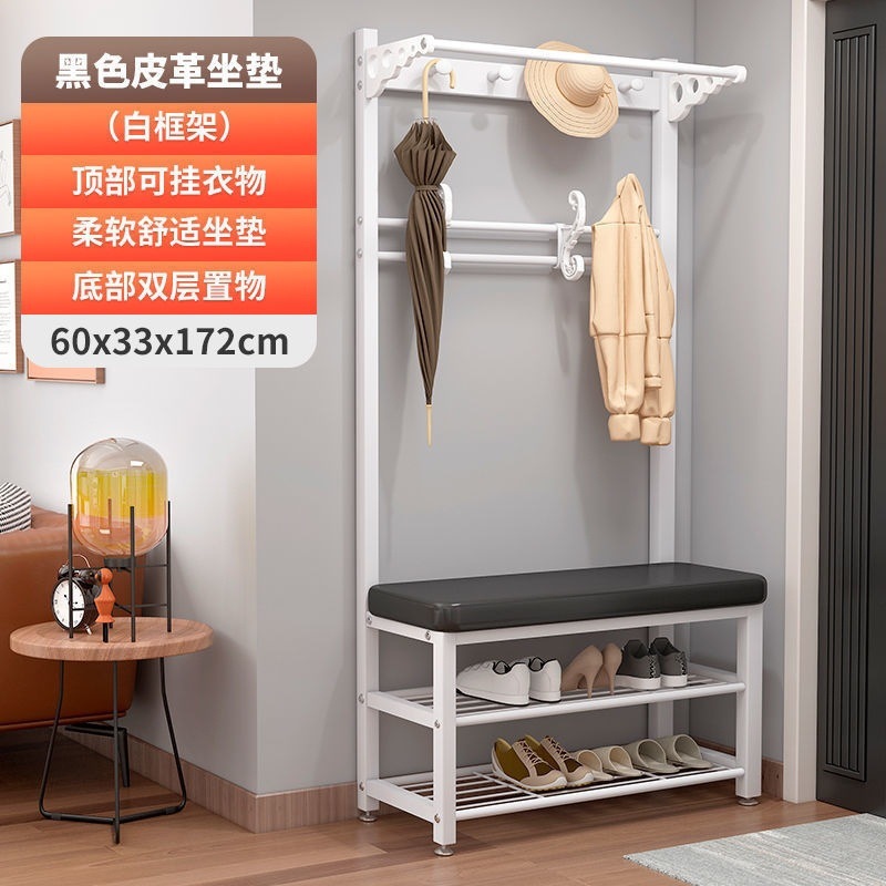 • 블랙 프레임 블랙 가죽 표면 60CM (신발 의자 + 코트 랙)