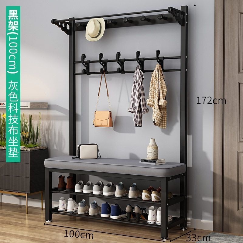 • 블랙 랙 기술 그레이 100CM (신발 의자 + 코트 랙)