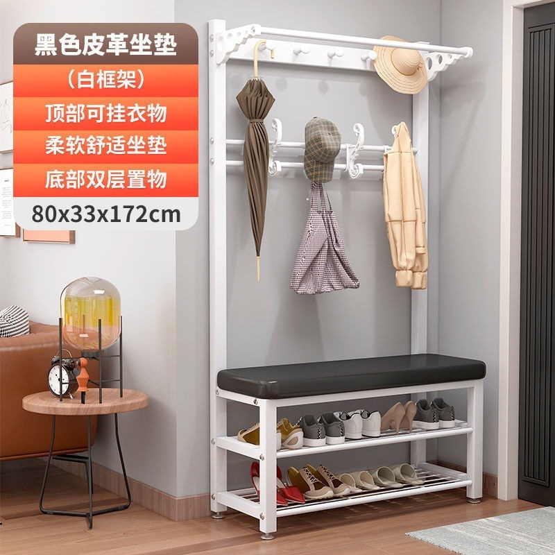 • 블랙 랙 블랙 가죽 표면 80CM (신발 의자 + 코트 랙)