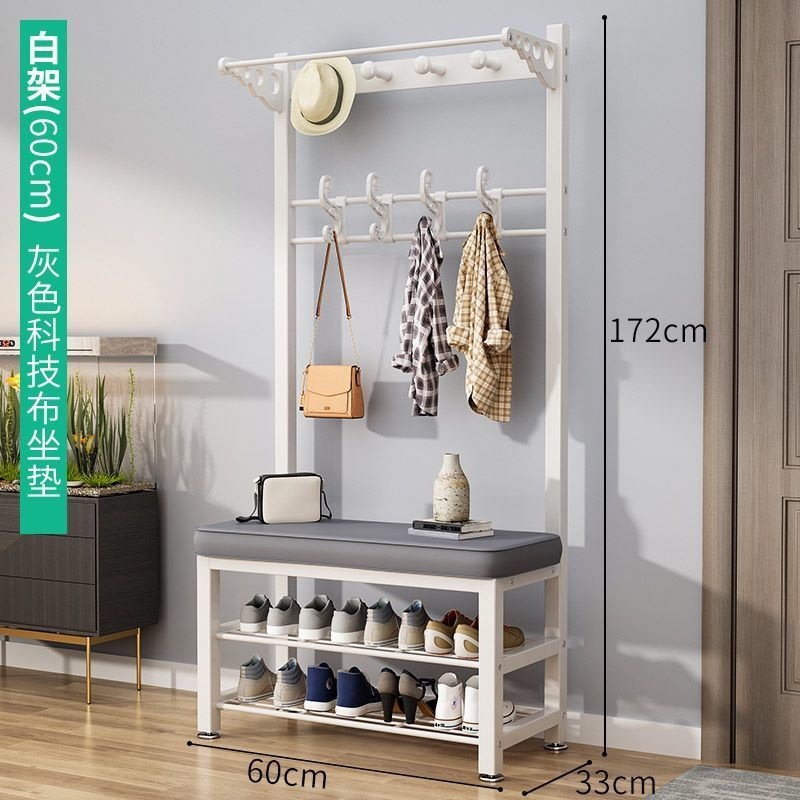 • 흰색 프레임 회색 표면 60CM (신발 의자 + 코트 랙)
