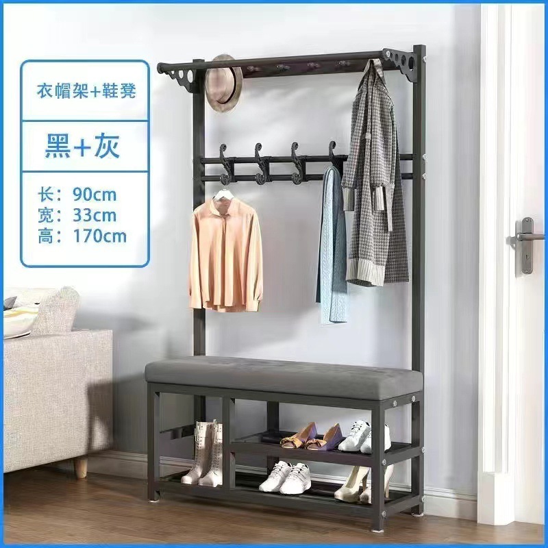 • 블랙 랙 기술 그레이 60CM (신발 의자 + 코트 랙)