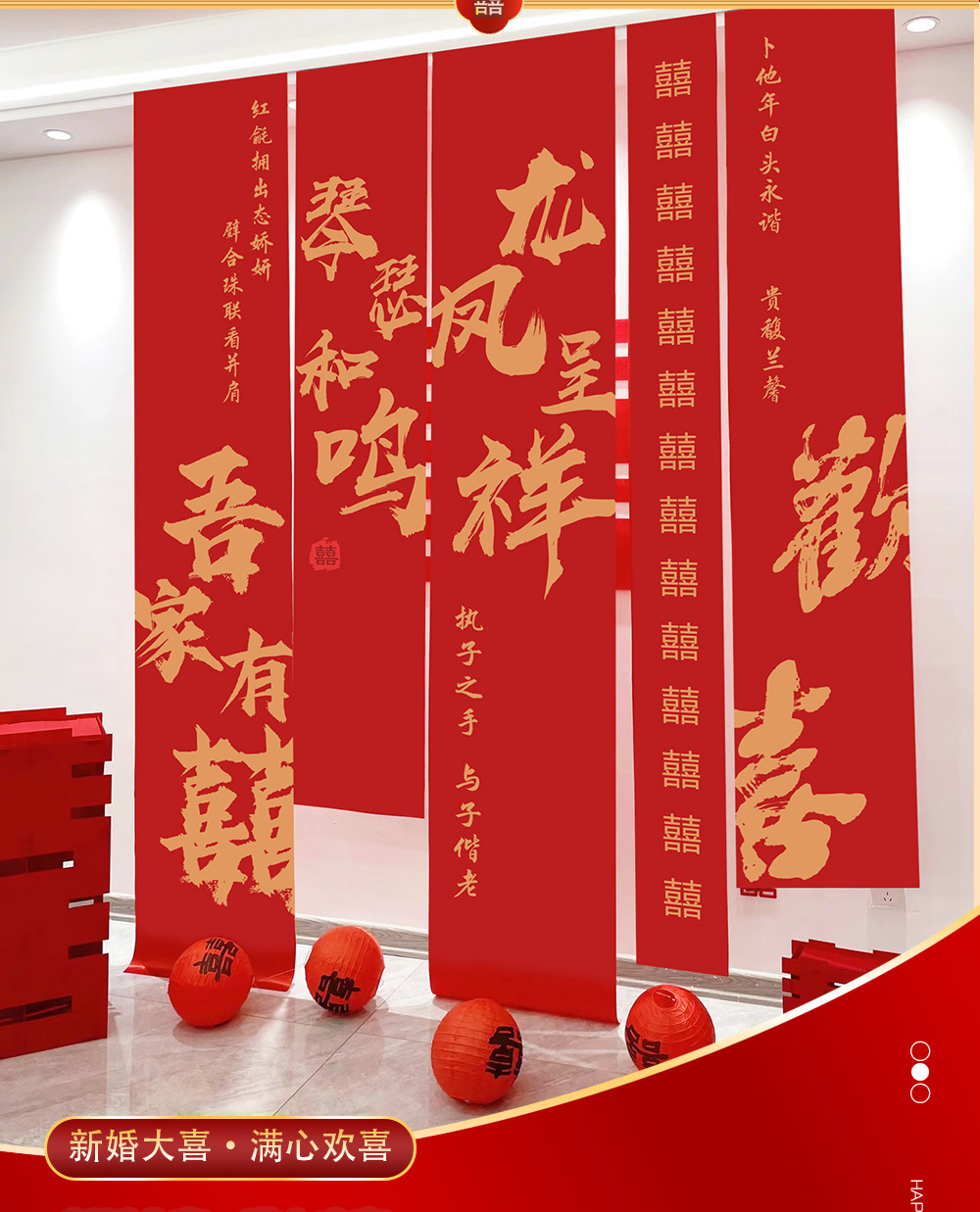 중국 배너 분위기 웨딩 룸 장식 농촌 안뜰 레이아웃 결혼식 긴 배너 매달려 천 웨딩 룸 축제 교수형 장식