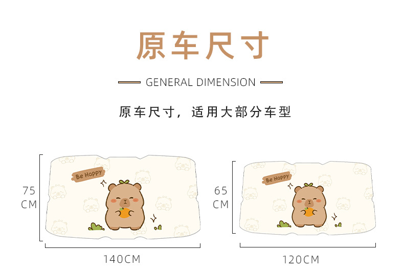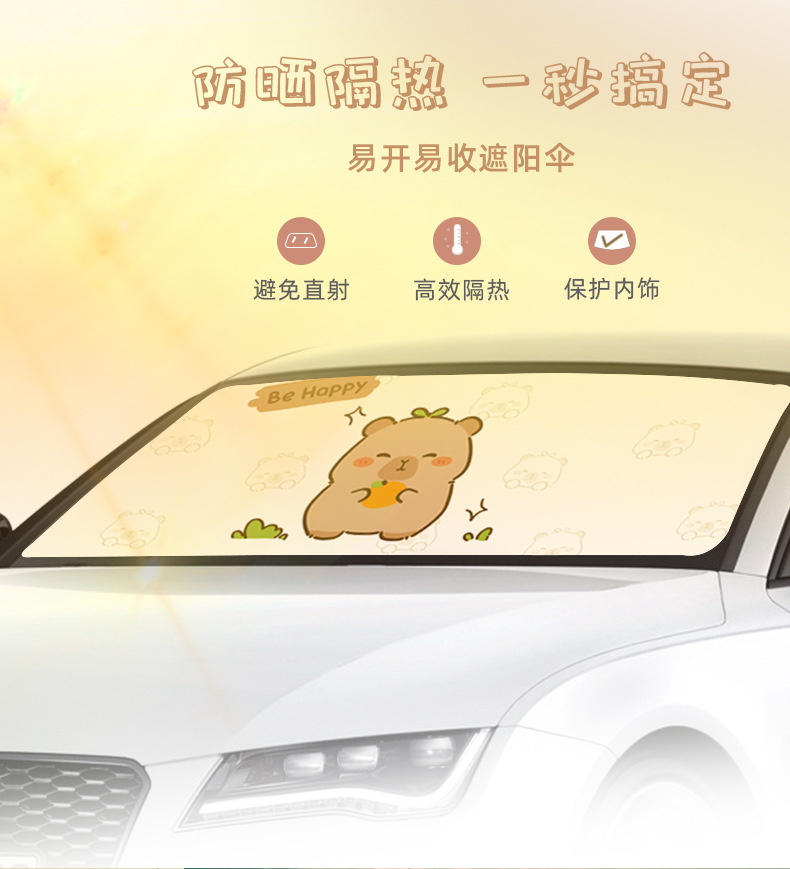 자동차 차양 카피바라 자외선 차단 및 단열 자동차 차양 전면 여름 범용 자동차 차양