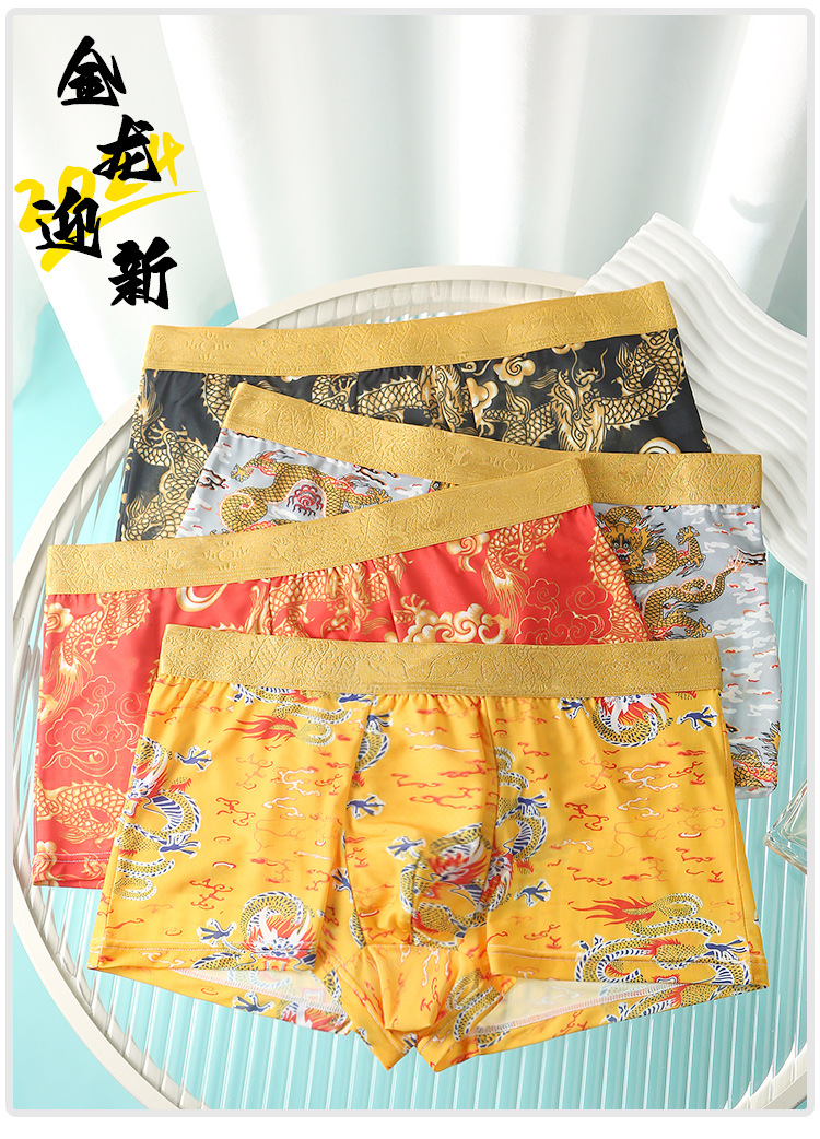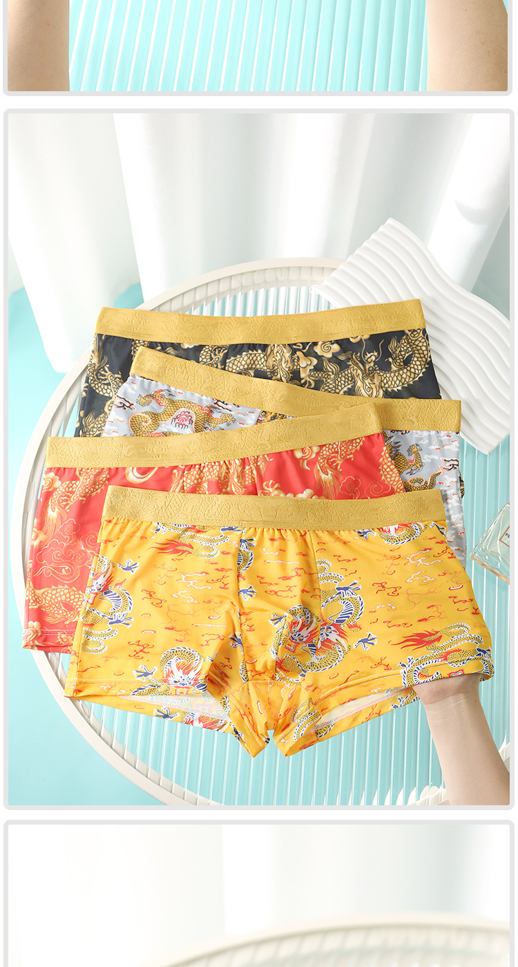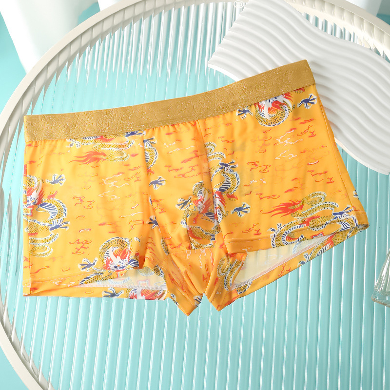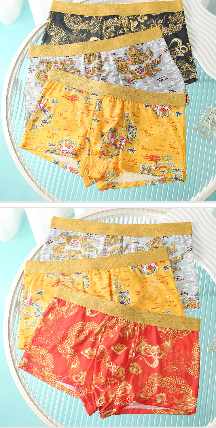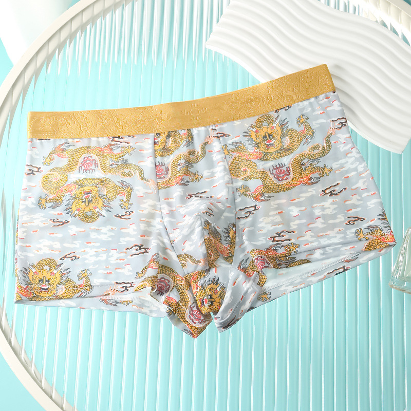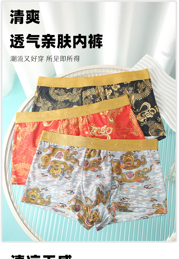 드래곤 년 남성 속옷 아이스 실크 통기성 출생 속옷 남성 플러스 사이즈 느슨한 통기성 복서 반바지 도매스토어 가기