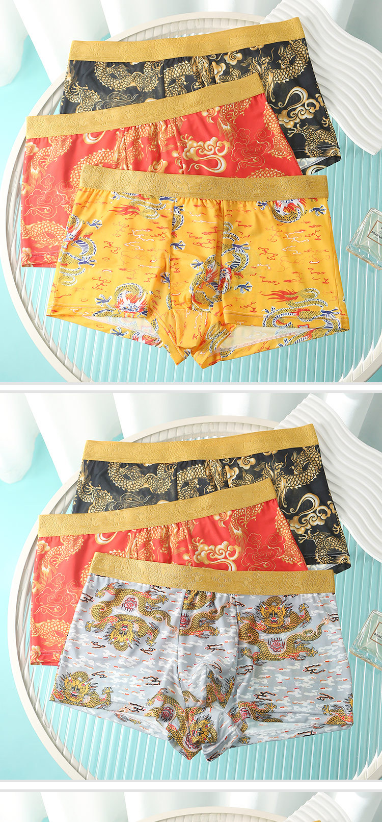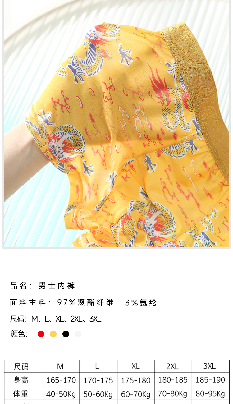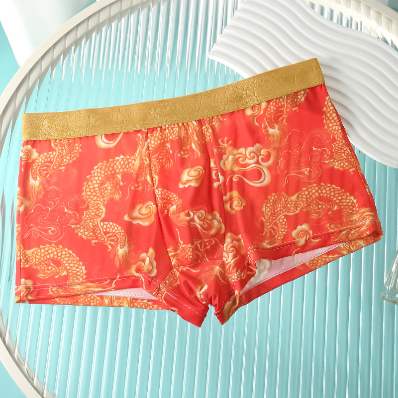 드래곤 년 남성 속옷 아이스 실크 통기성 출생 속옷 남성 플러스 사이즈 느슨한 통기성 복서 반바지 도매
