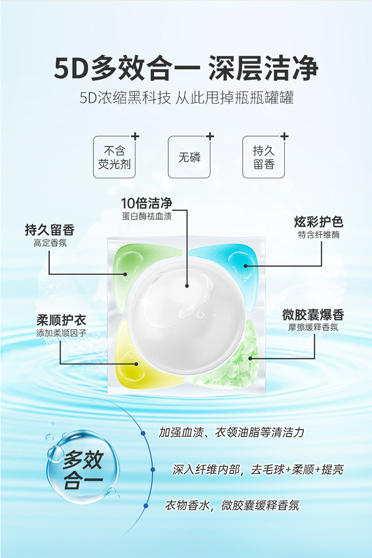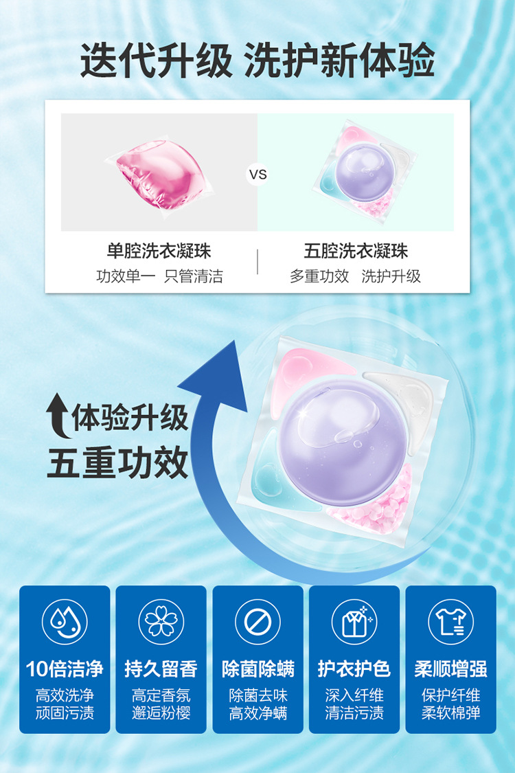 5 개의 캐비티 세탁 젤 구슬 오래 지속되는 향수 유지 구슬 세탁 공 8 배 깨끗한 살균 진드기 제거 멀티 효과 농축 세탁 세제스토어 가기