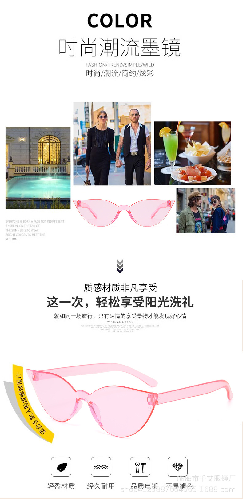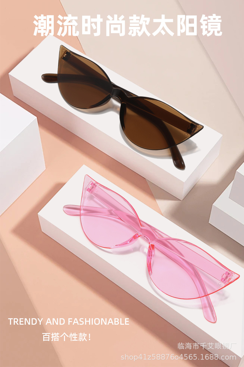2024 국경을 넘는 새로운 선글라스 유럽과 미국의 성격 고양이 눈 선글라스 캔디 컬러 패션 트렌드 스트리트 촬영 불규칙스토어 가기