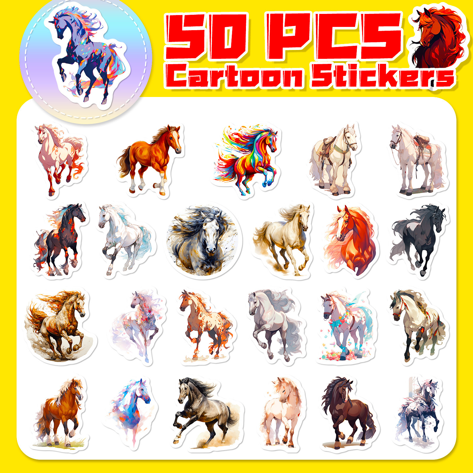 50 낙서 말 스티커 아마존 AliExpress 새로운 크로스 국경 승마 스포츠 트렌드 만화 낙서 스티커스토어 가기