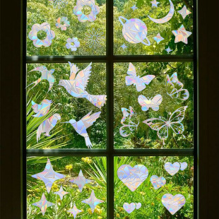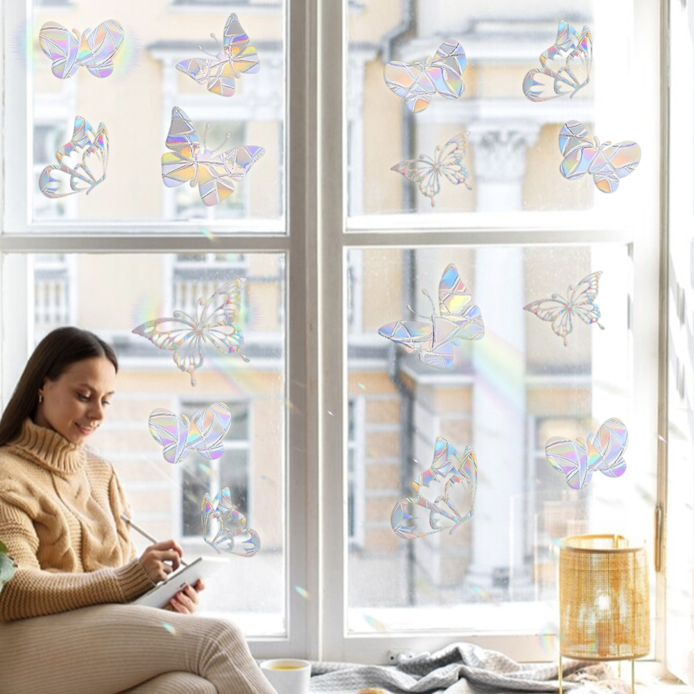 아이크 다채로운 선샤인 나비 무지개 프리즘 창 유리 스티커 발코니 태양 포수 장식 정전기 스티커스토어 가기