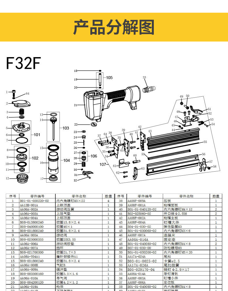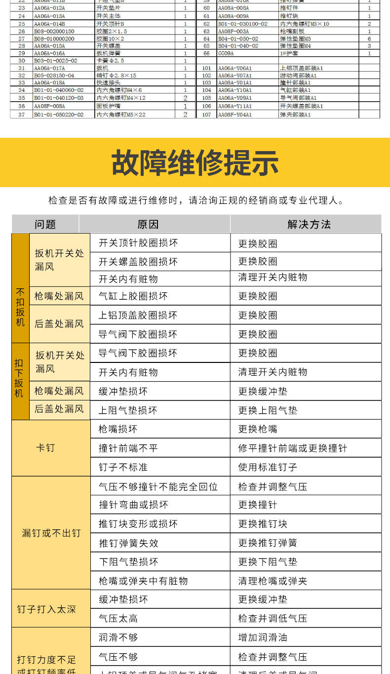 • 1013JD 코드 네일 건 (작은 실린더 | 발사 핀)