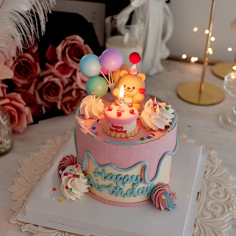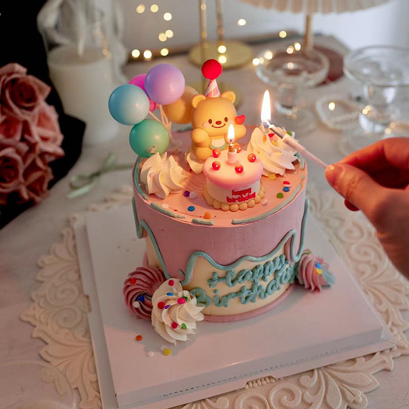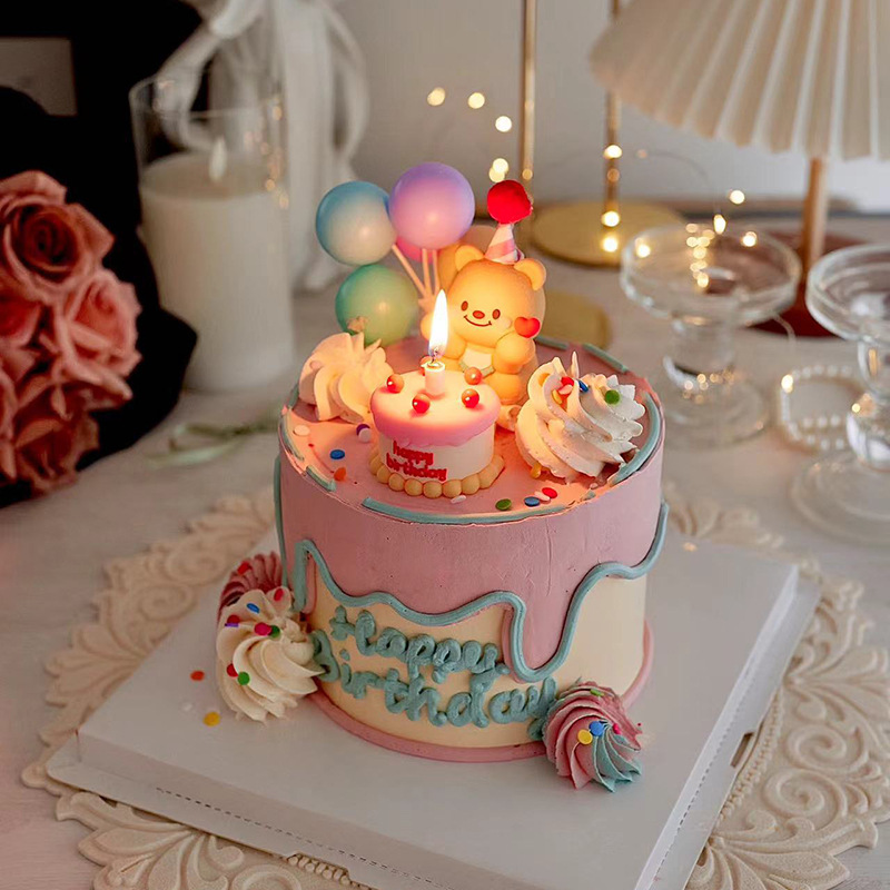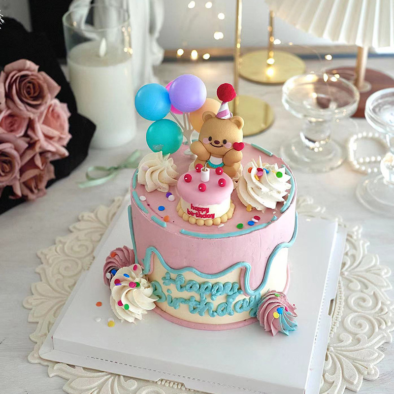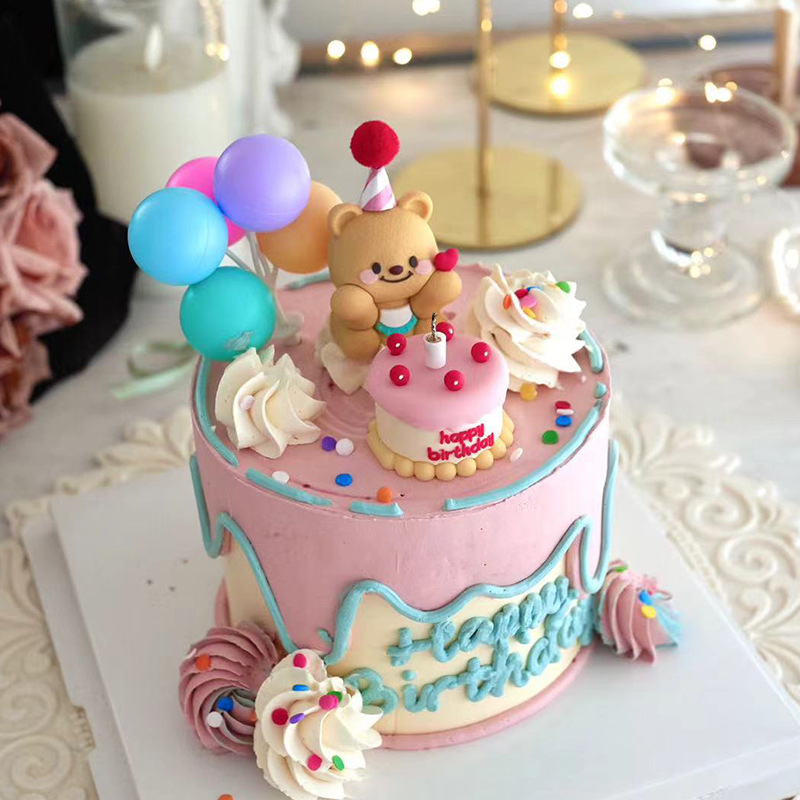 베이킹 케이크 장식 온라인 유명 인사 부드러운 접착제 3 차원 곰 미니 케이크 생일 디저트 원피스 플러그인스토어 가기