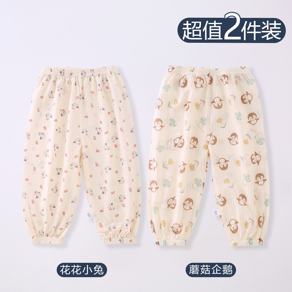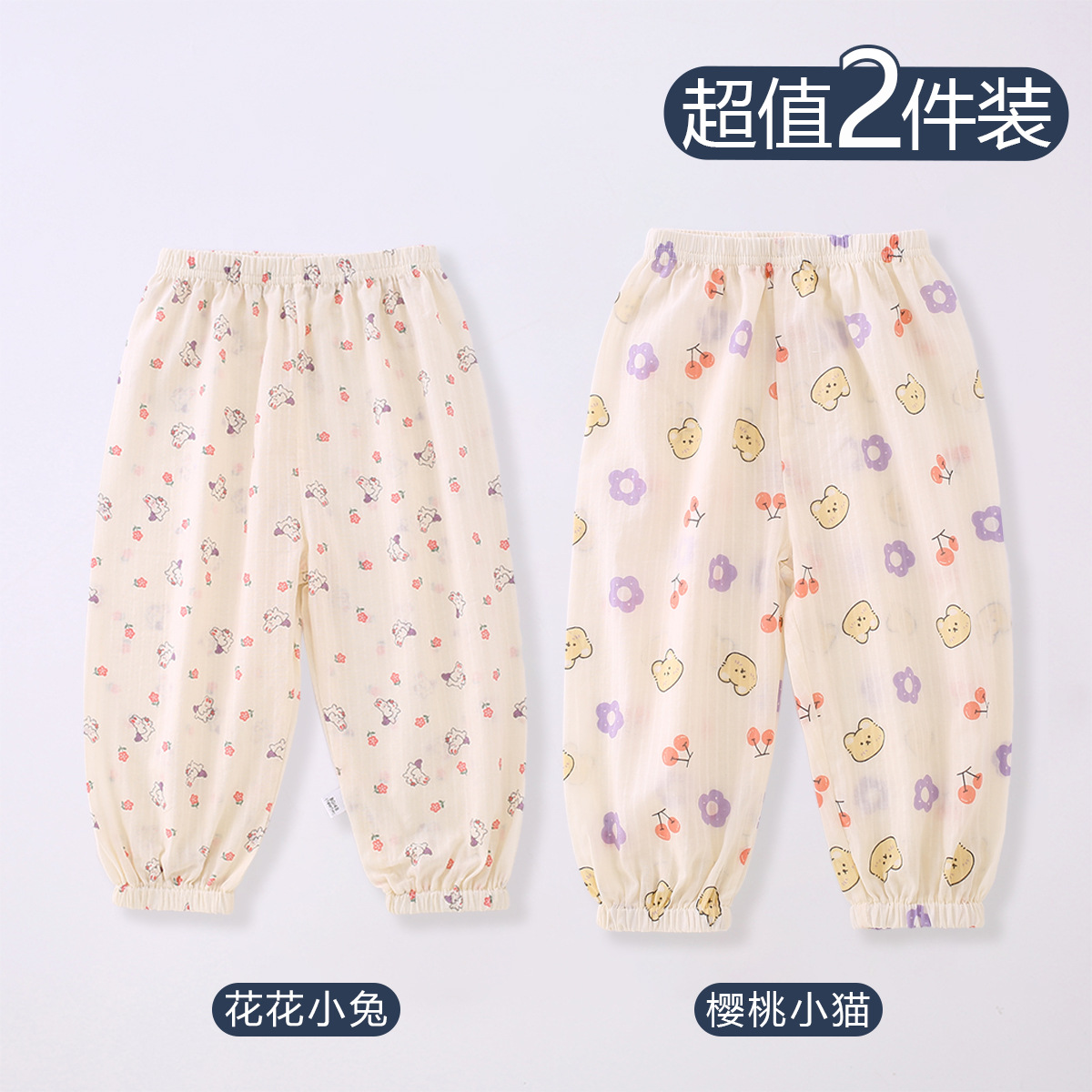 儿童防蚊裤春夏薄款A类纯棉冰丝抖抖裤 男女宝宝裤子卡通印花透气