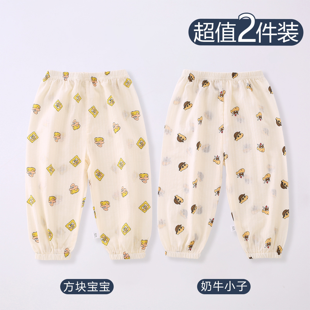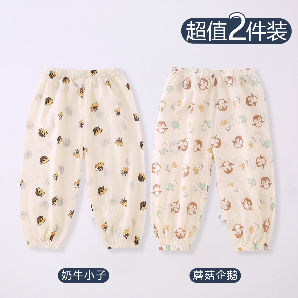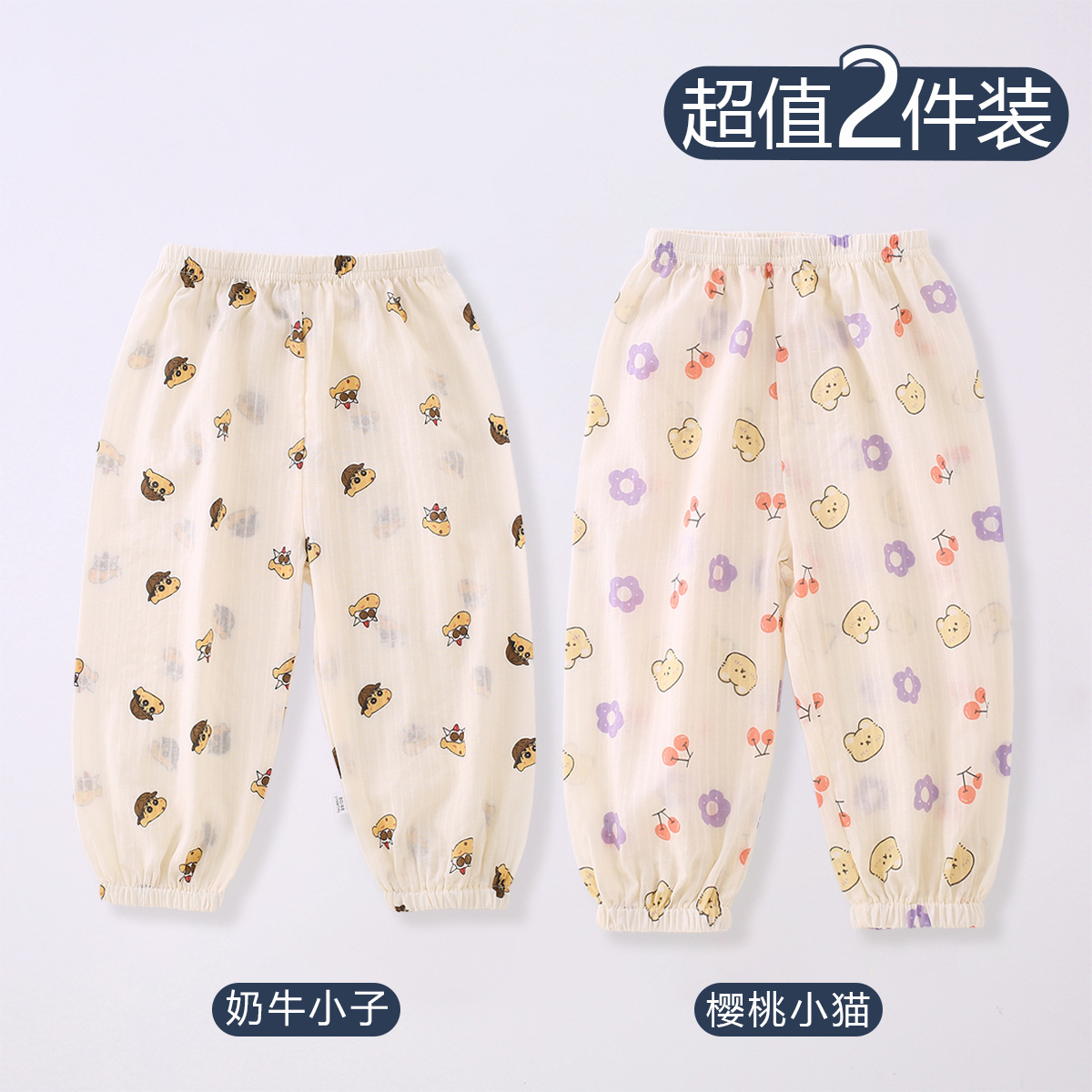 어린이 모기 방지 바지 봄/여름 얇은 클래스 순수한면 아이스 실크 흔들리는 바지 소년 소녀 아기 바지 만화 통기성 인쇄스토어 가기