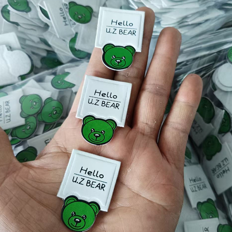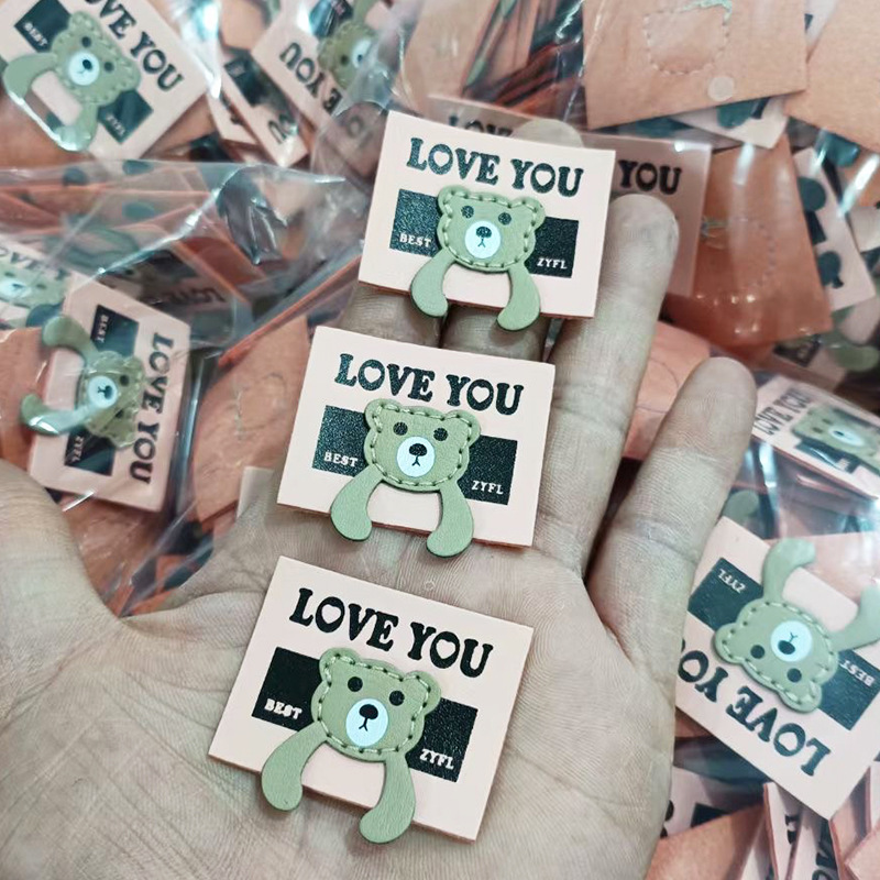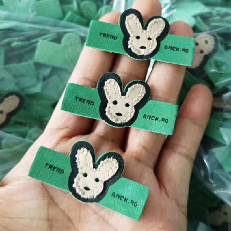 토끼 만화 편지 모방 가죽 라벨 패션 여성 가방 장식 PU 가죽 사인 어린이 의류 Microfiber 가죽 상표스토어 가기