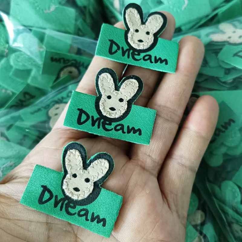 토끼 만화 편지 모방 가죽 라벨 패션 여성 가방 장식 PU 가죽 사인 어린이 의류 Microfiber 가죽 상표