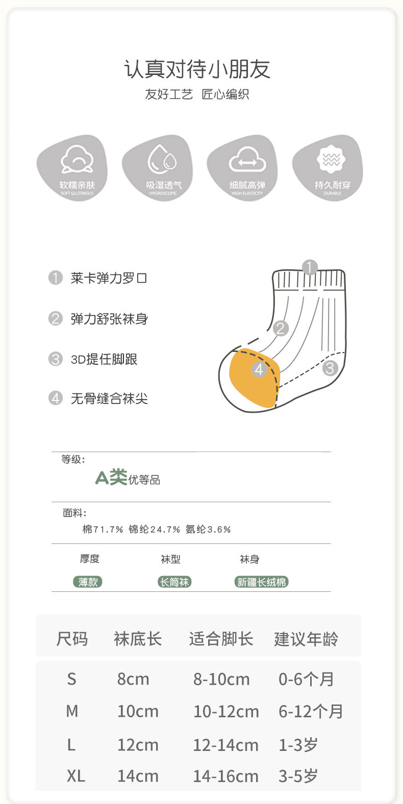 3 쌍 아기 얇은 봄과 여름 바닥 양말 뼈없는 메쉬 신생아 스포츠 클래스 아기 어린이 긴 양말