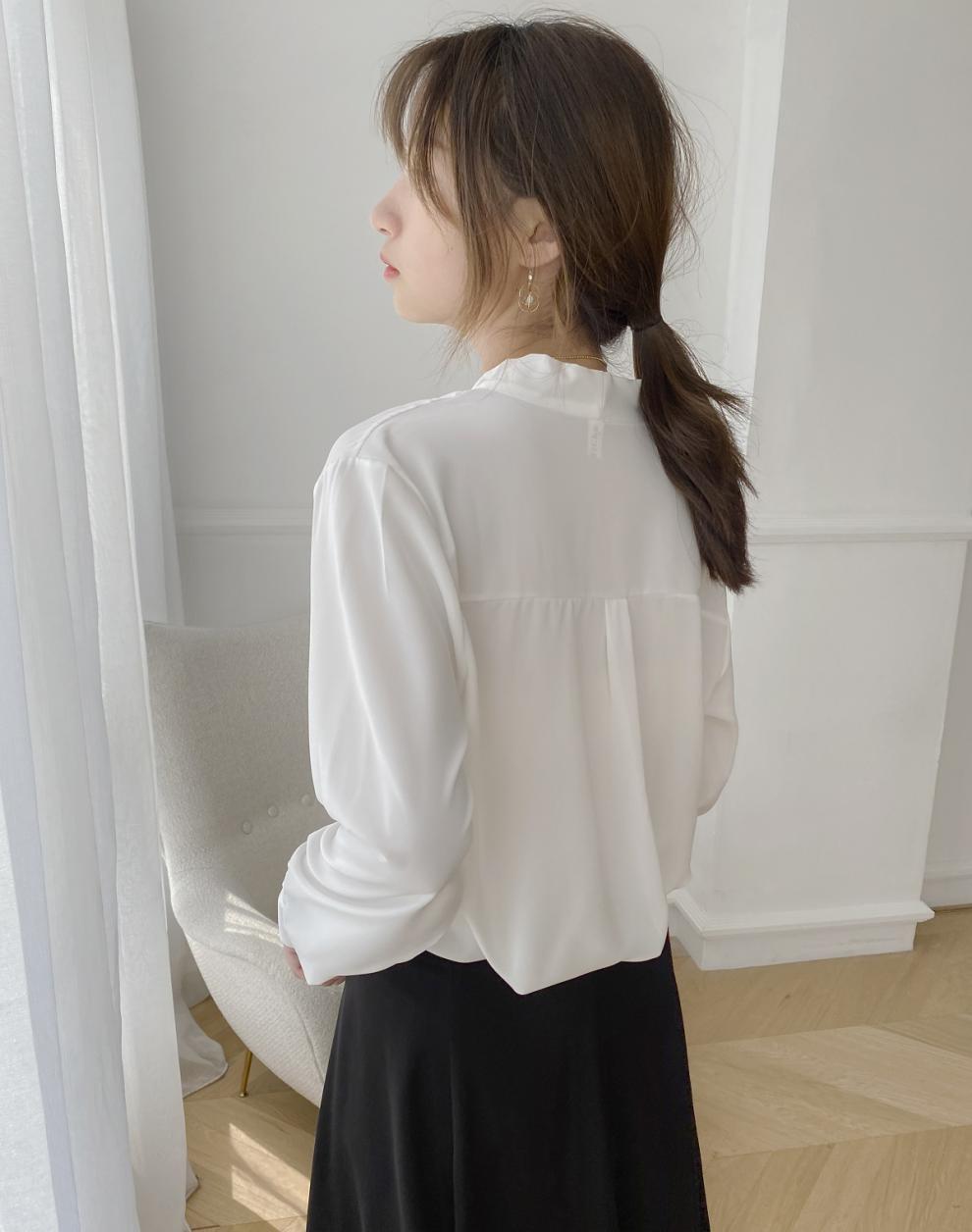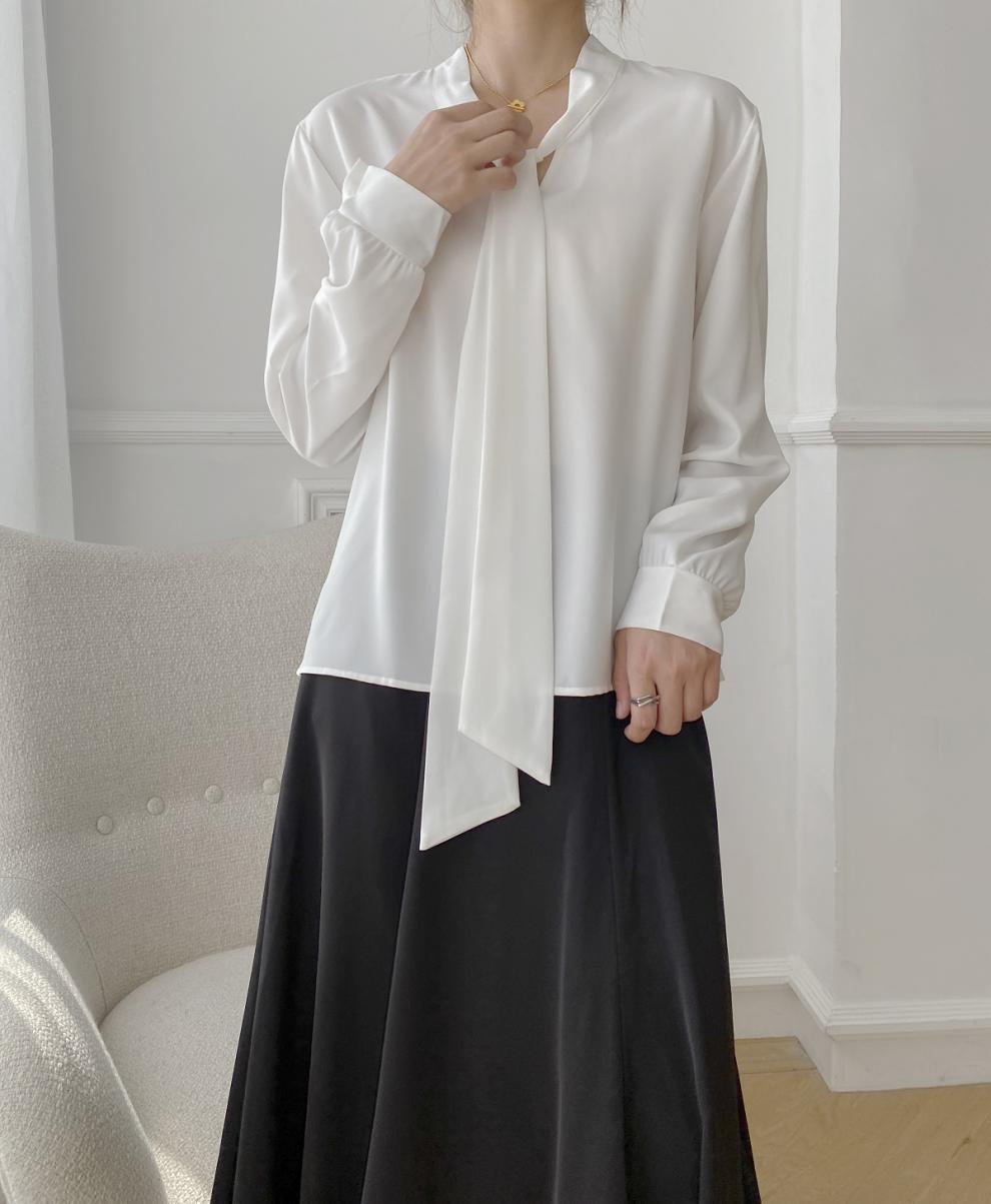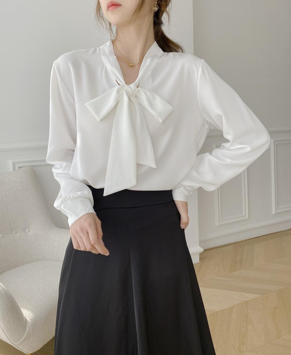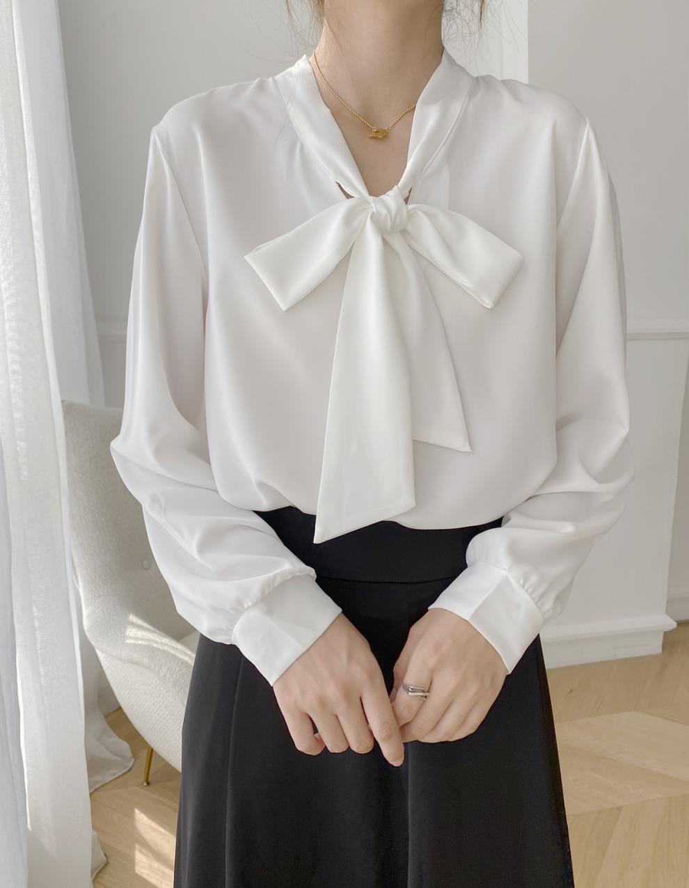 봄과 가을 나비 레이스 업 화이트 쉬폰 셔츠 여성의 전문 기질 긴팔 셔츠 2024 실제 샷스토어 가기