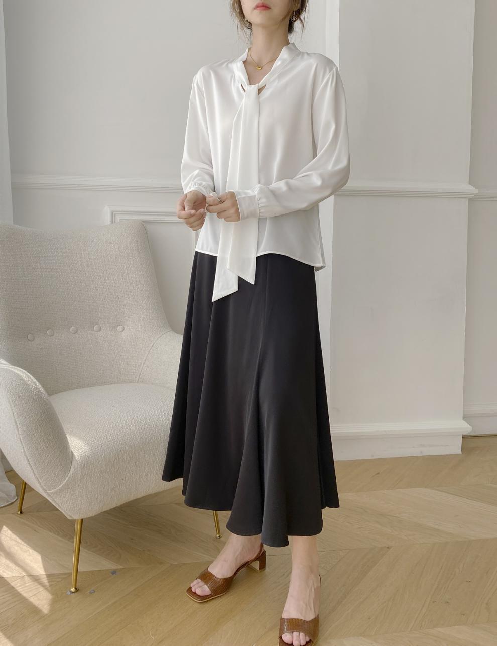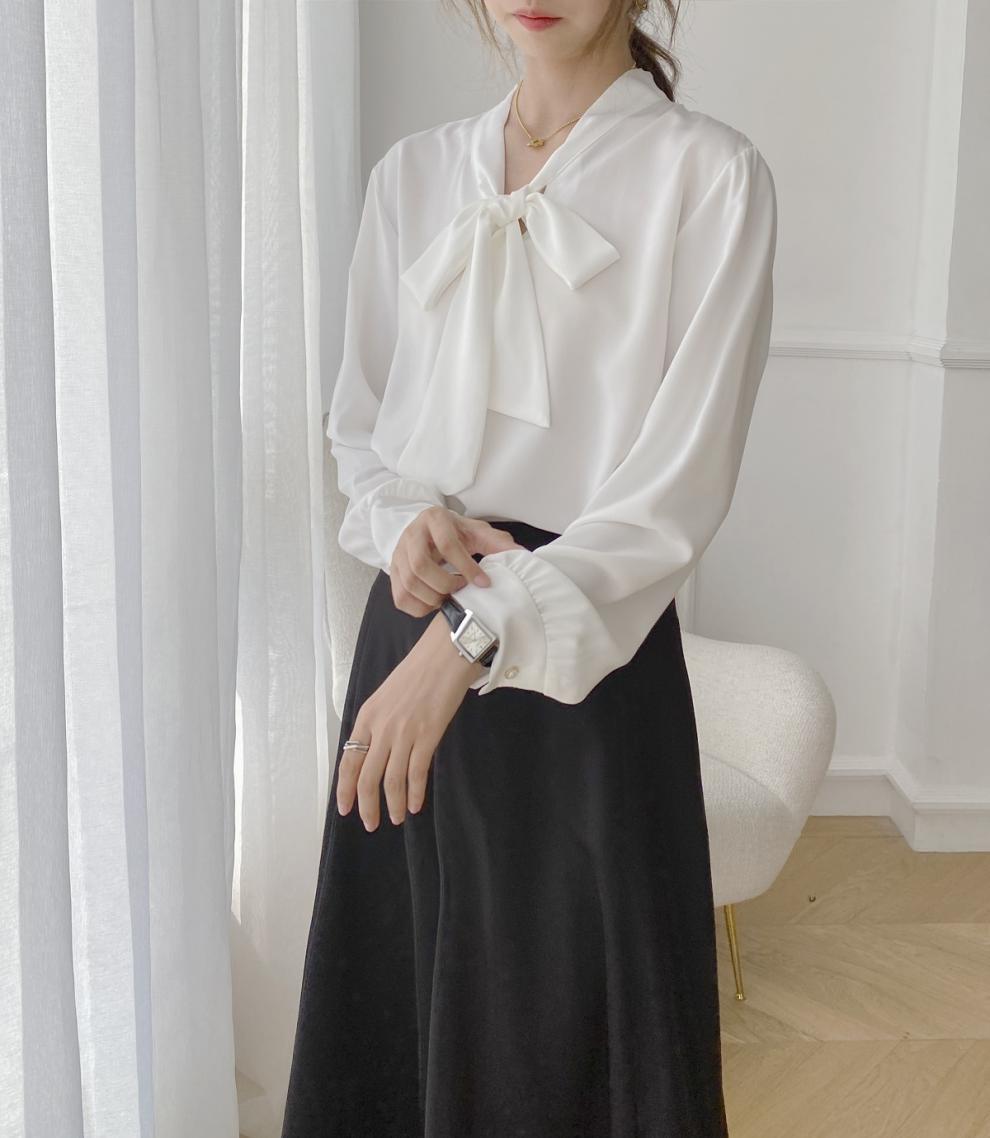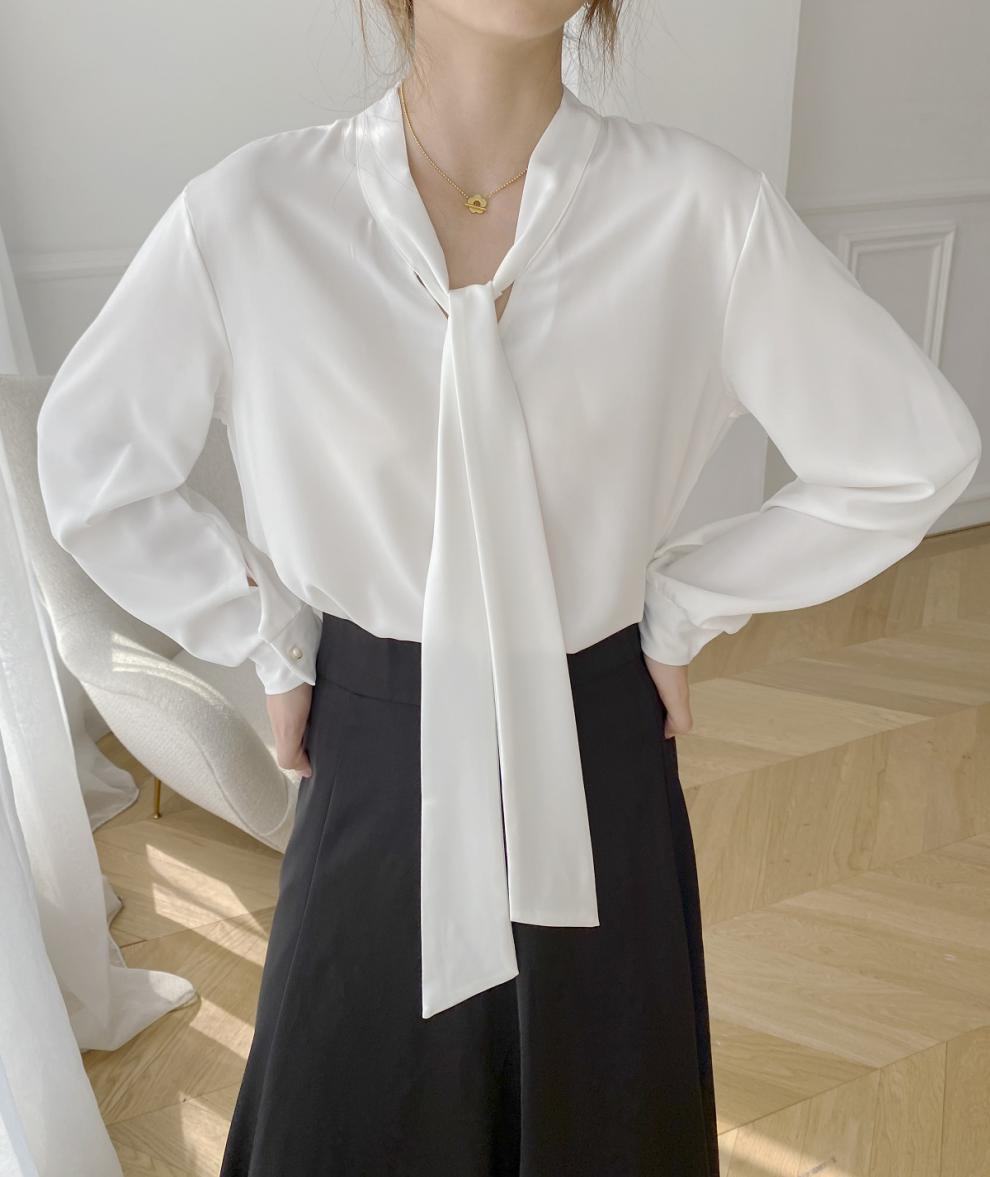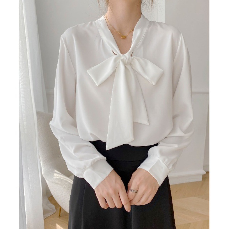 봄과 가을 나비 레이스 업 화이트 쉬폰 셔츠 여성의 전문 기질 긴팔 셔츠 2024 실제 샷스토어 가기