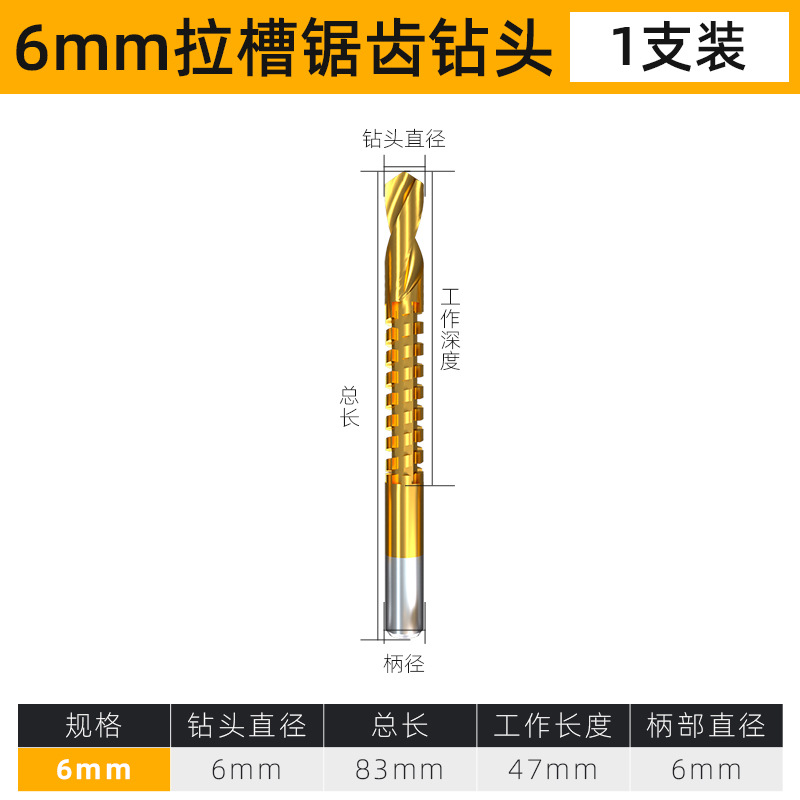 • 슬롯 형 톱니 모양의 드릴 (6mm)