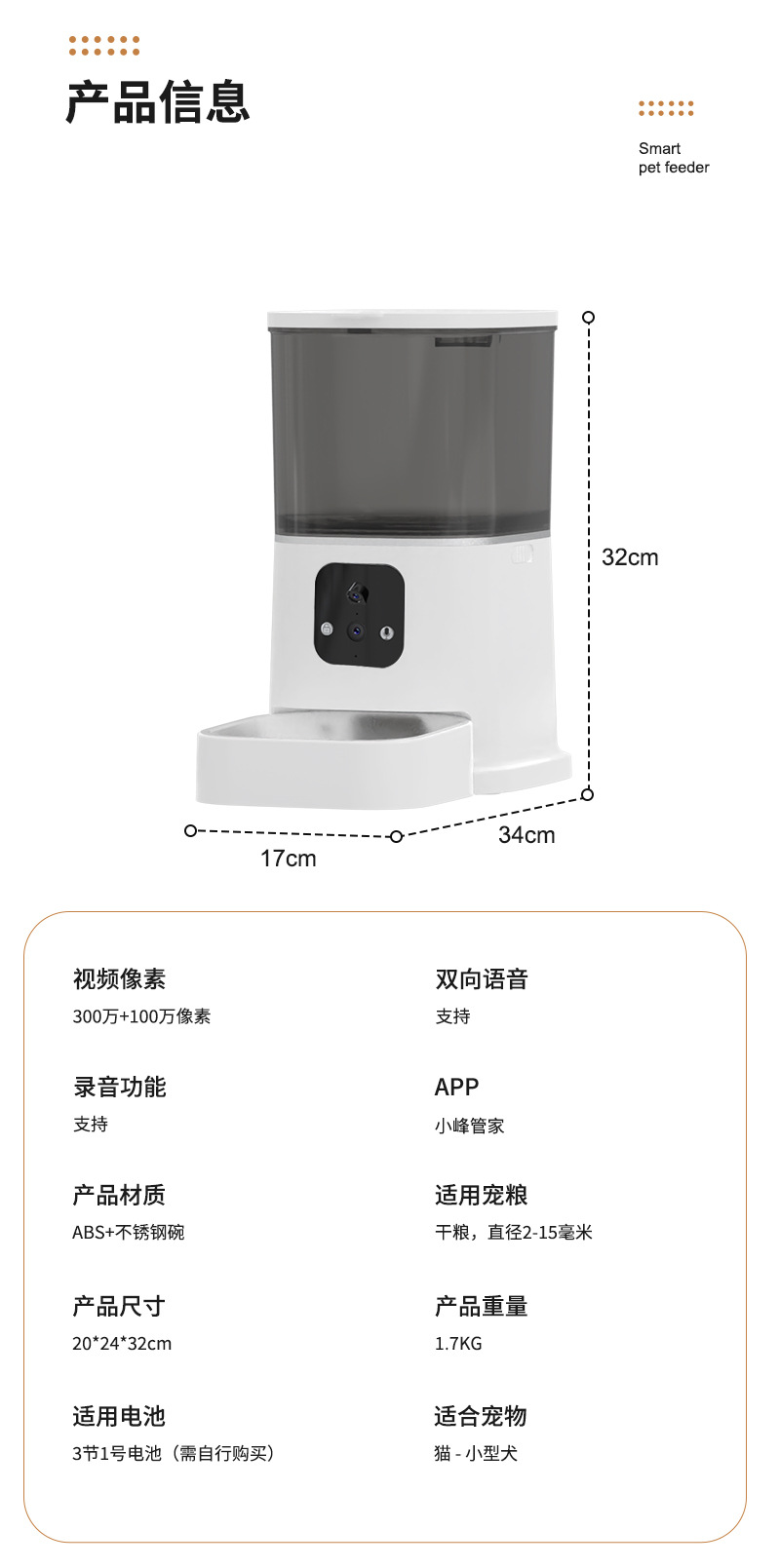 애완동물 자동 급식기 고양이용 스마트 듀얼 카메라 6L 대용량 강아지 고양이 사료 정량급식기
