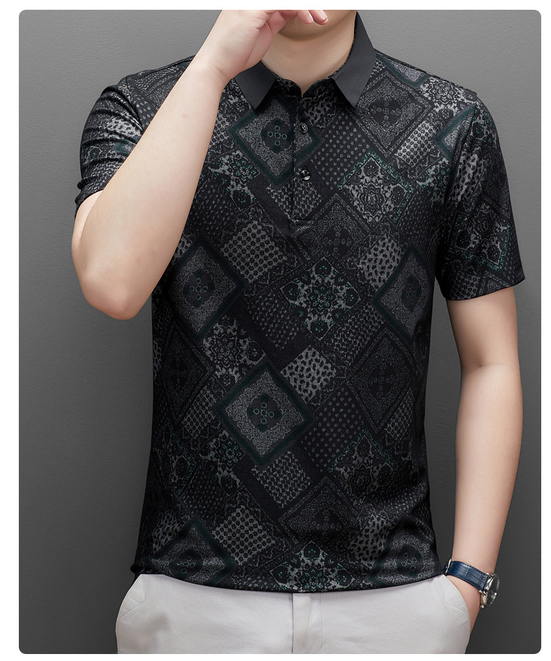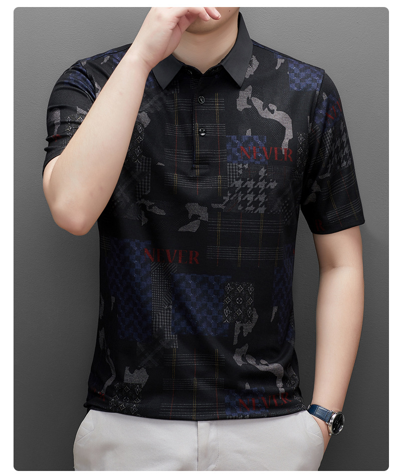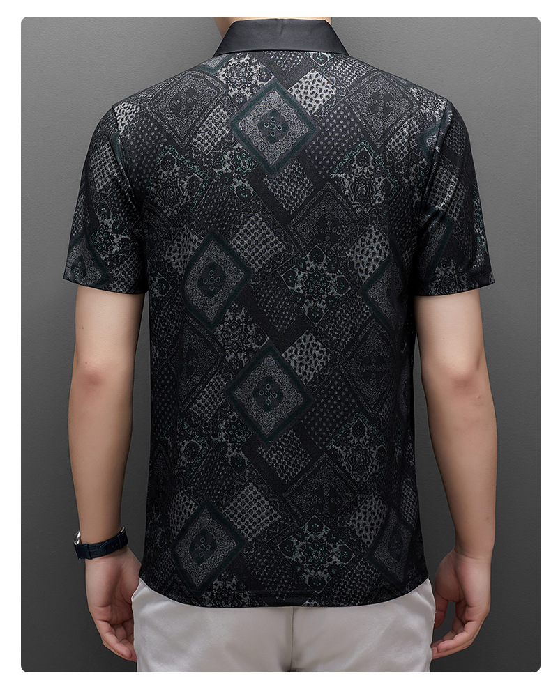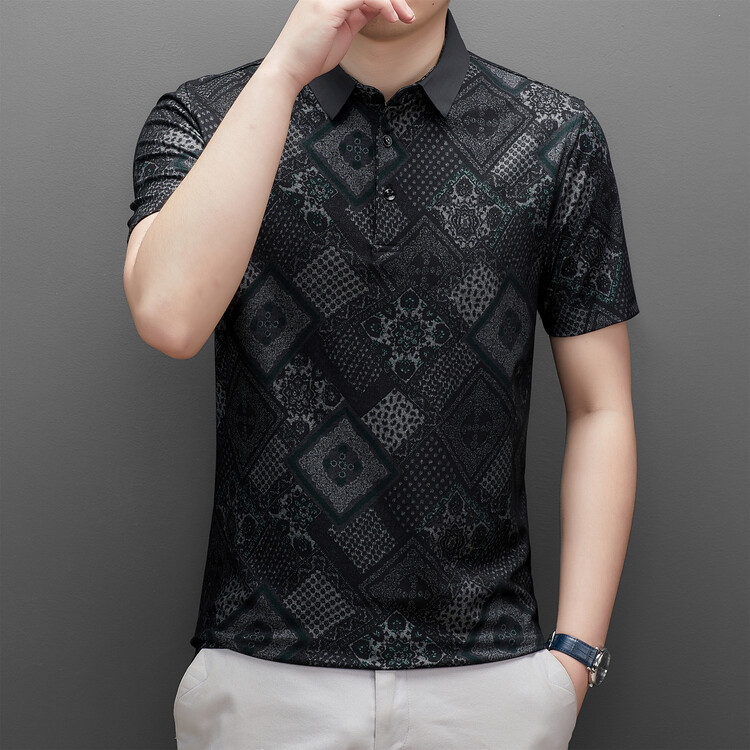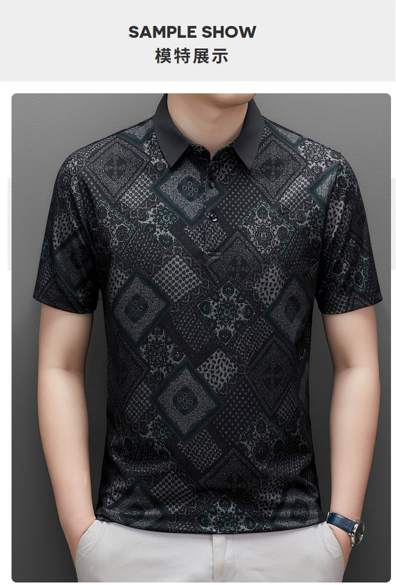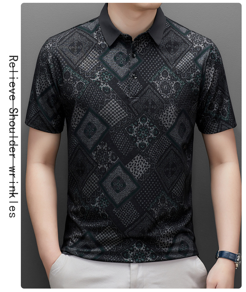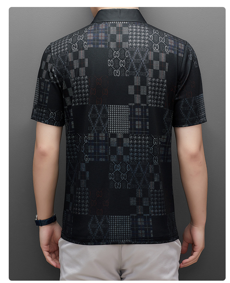 남성 반팔 옷깃 티셔츠 꽃 티셔츠 남성 중년 및 노인 아빠 느슨한 폴로 셔츠 칼라 여름 옷깃 중년스토어 가기