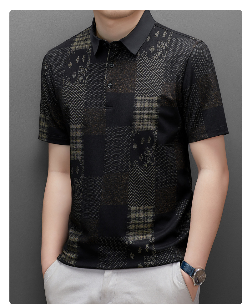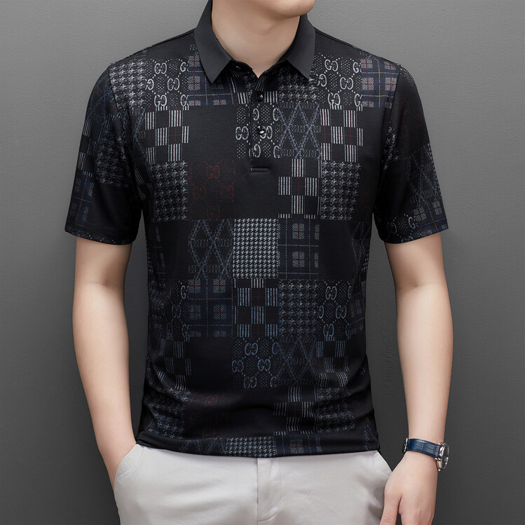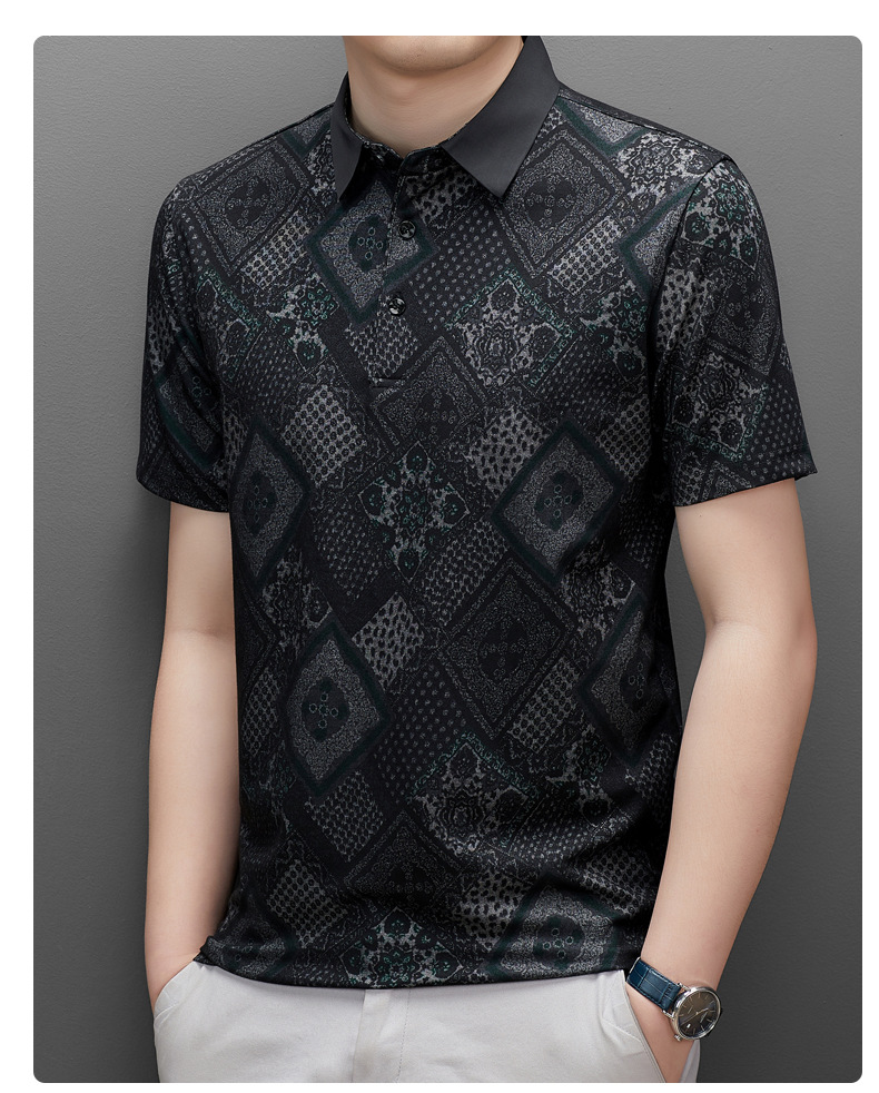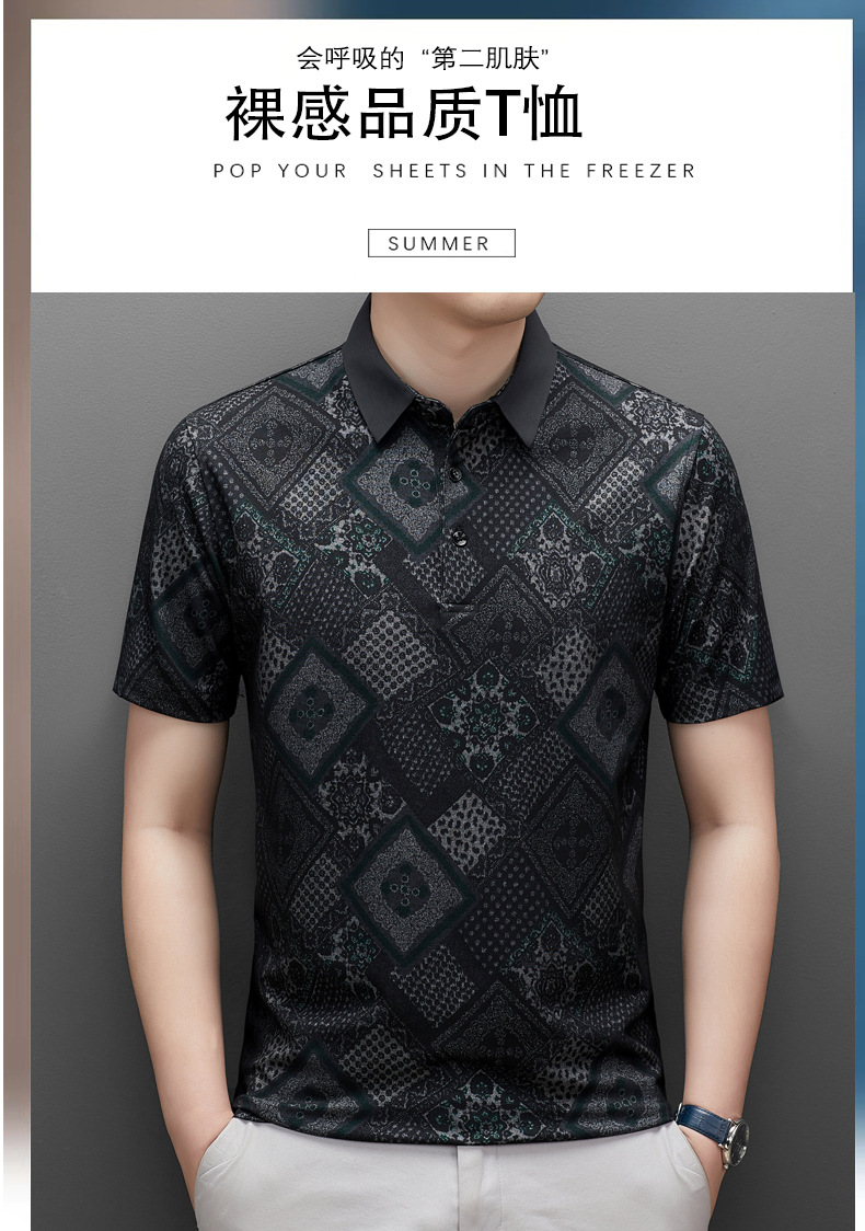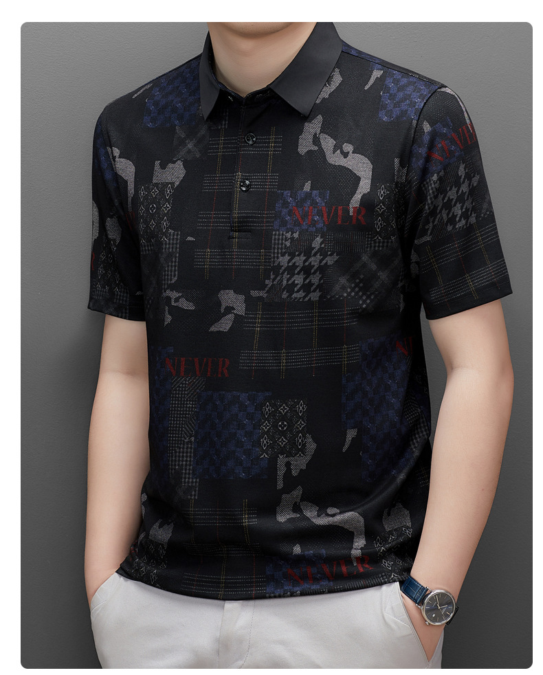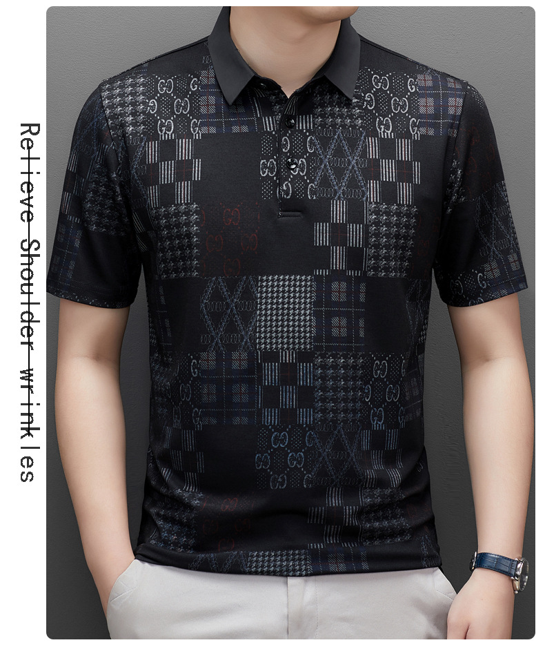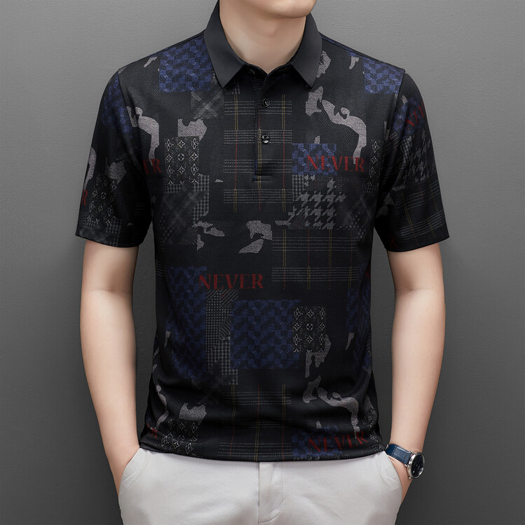 남성 반팔 옷깃 티셔츠 꽃 티셔츠 남성 중년 및 노인 아빠 느슨한 폴로 셔츠 칼라 여름 옷깃 중년스토어 가기