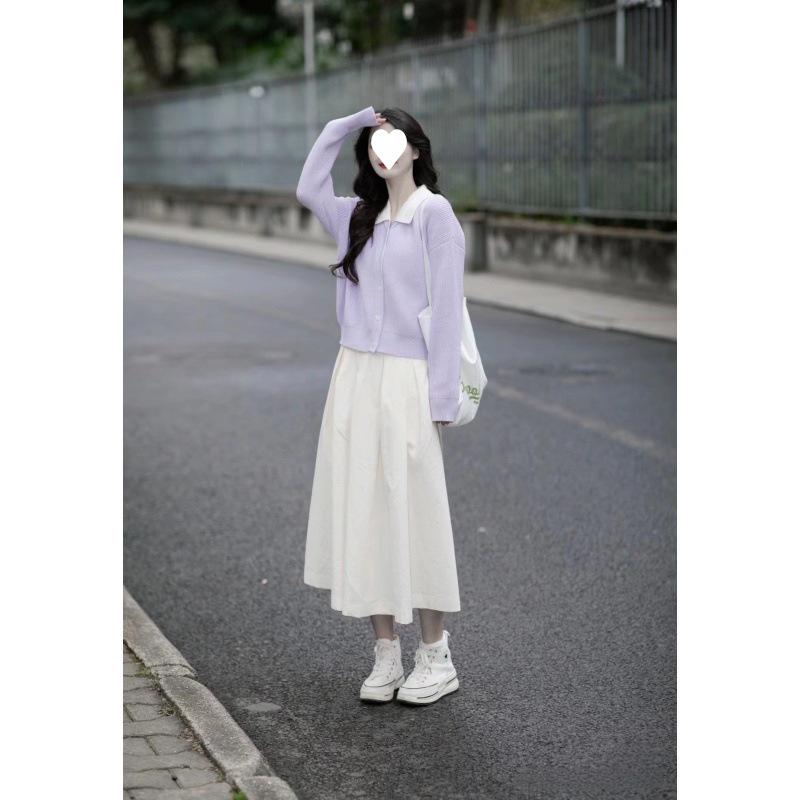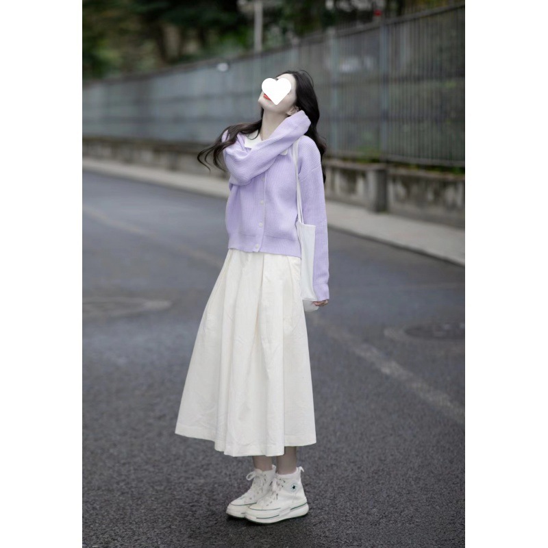 작은 봄과 가을 2024 새로운 원피스 세트 유행 한국식 나이를 줄이는 고급 부드러운 스웨터 투피스 세트 스커트스토어 가기