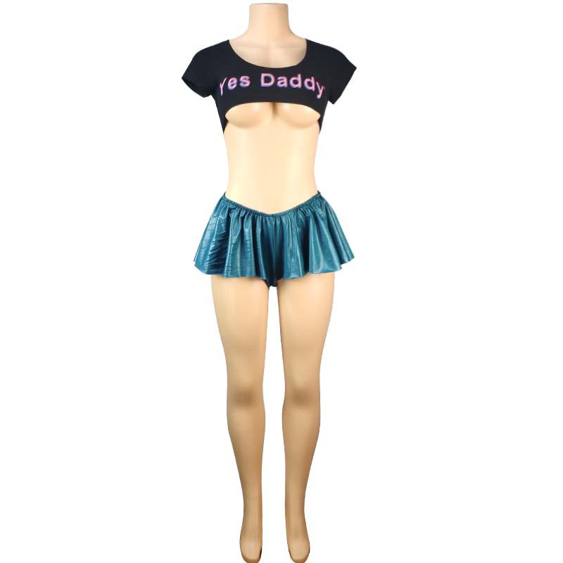 • 2436 모조 가죽 느슨한 짧은 치마 파란색과 녹색