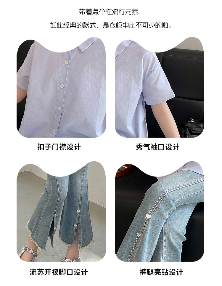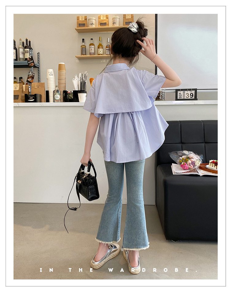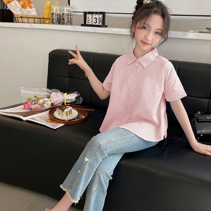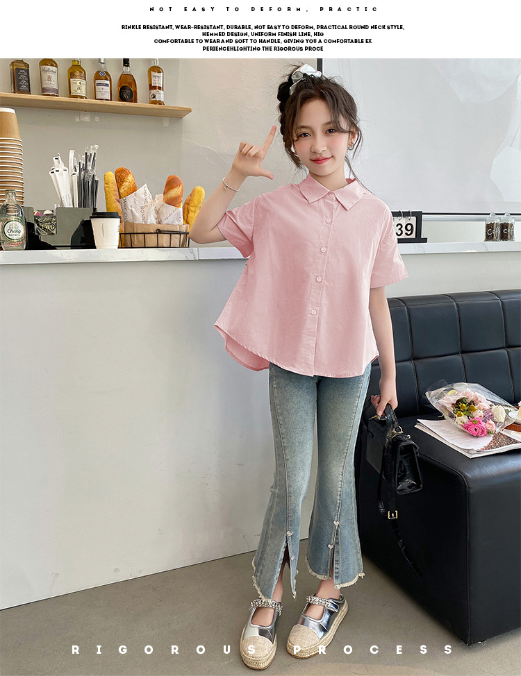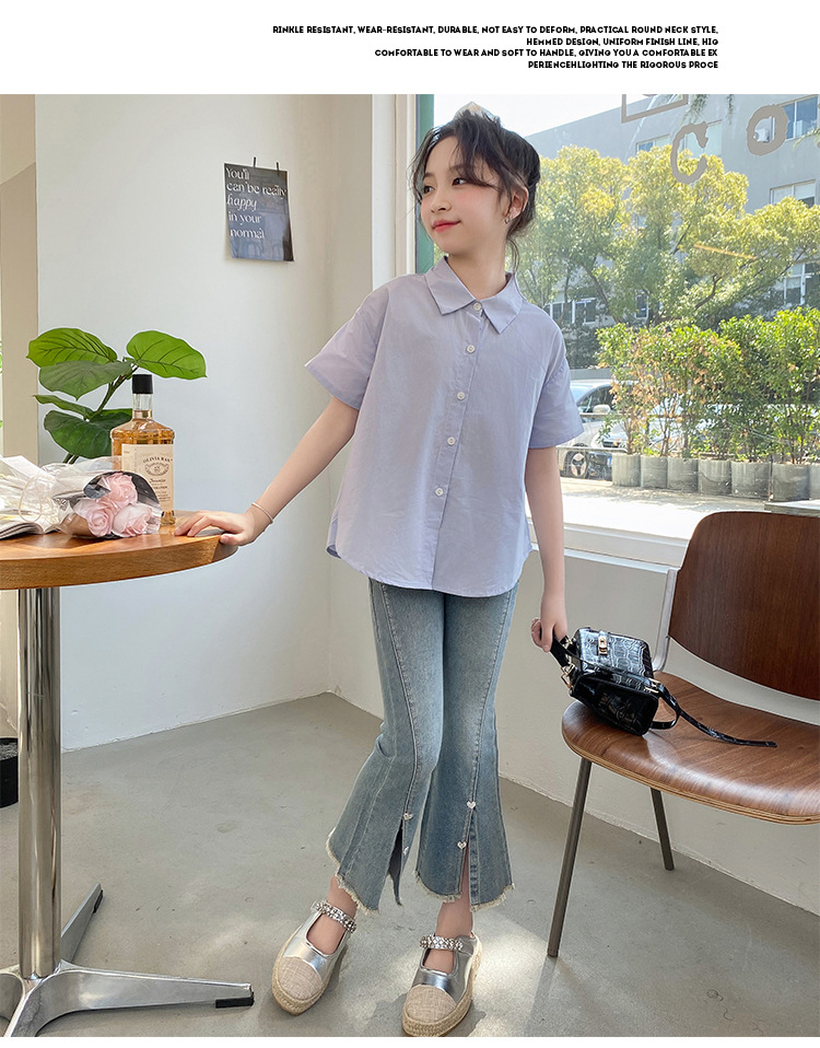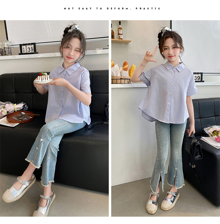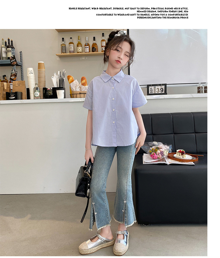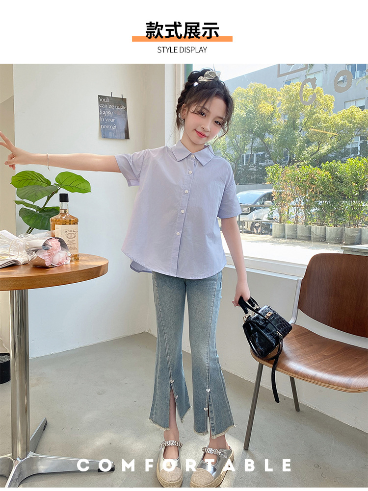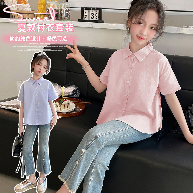 소녀의 여름 세트 2024 새로운 서양식 어린이 밝은 다이아몬드 데님 플레어 바지 인터넷 유명 인사 유행 어린이 여름복스토어 가기