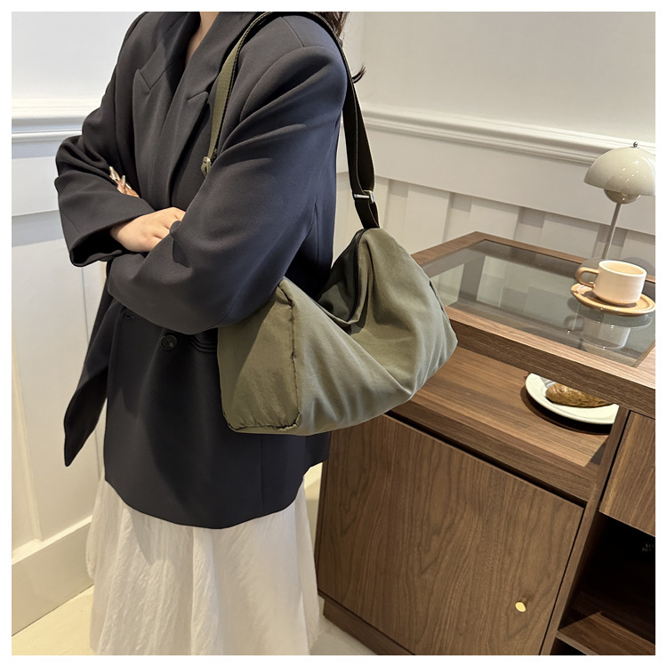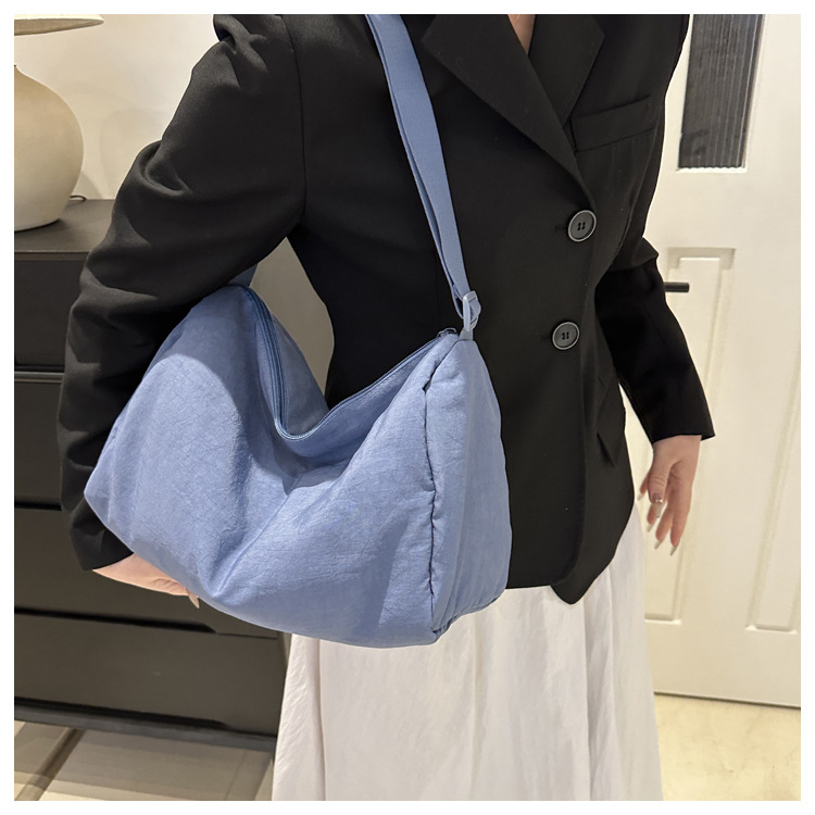 국경 간 2024 새로운 UJIA 같은 스타일의 여성 가방 나일론 가방 간단한 대용량 어깨 크로스 바디 여행 빅 백