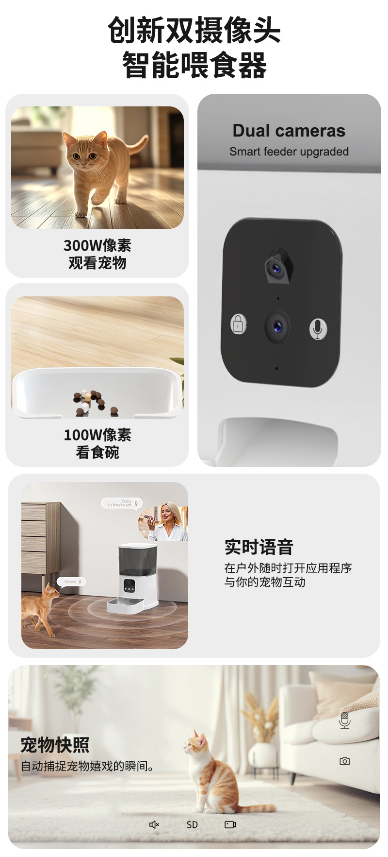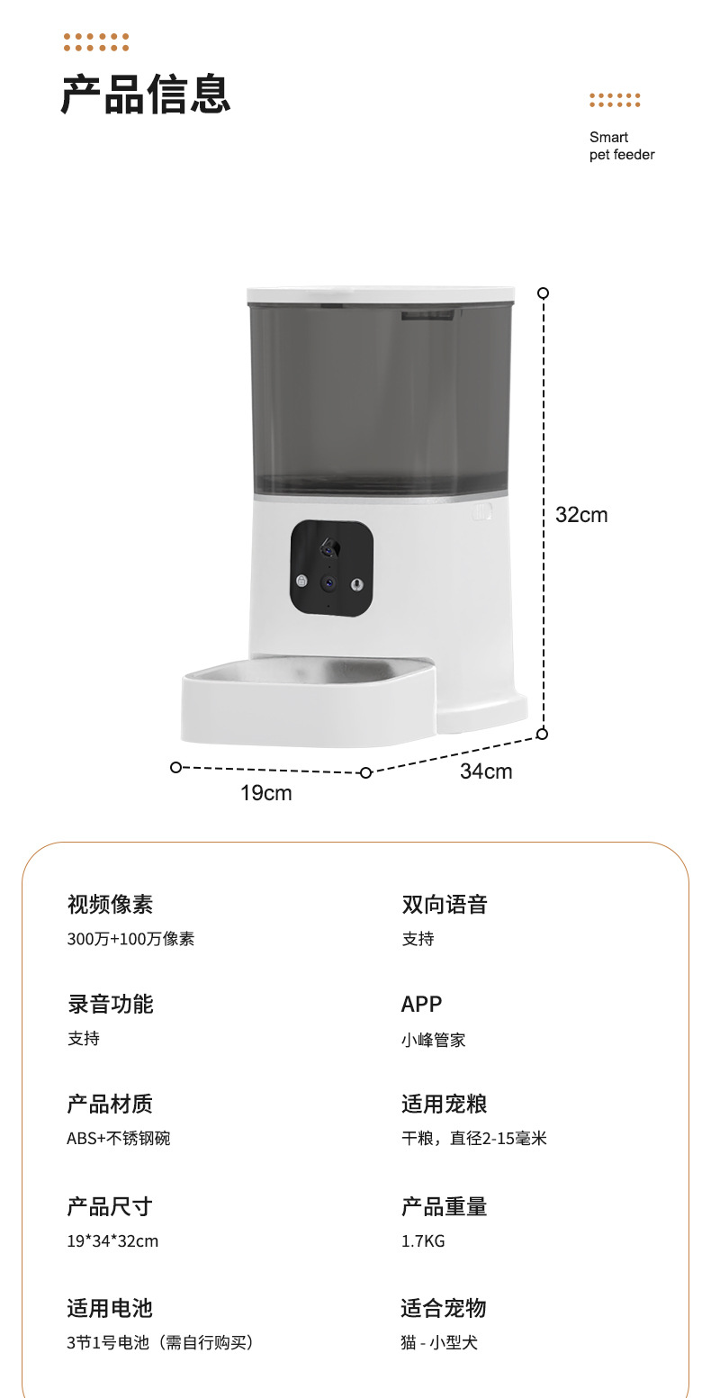 반려동물 자동 급식기 듀얼 카메라 스마트 센서 원격 급식 강아지 6L 고양이 사료 강아지 사료 그릇 해외 도매