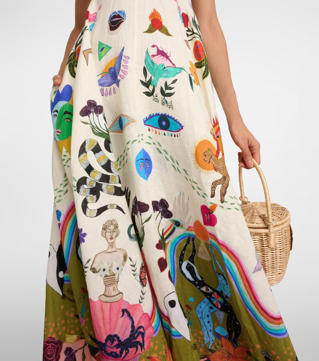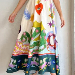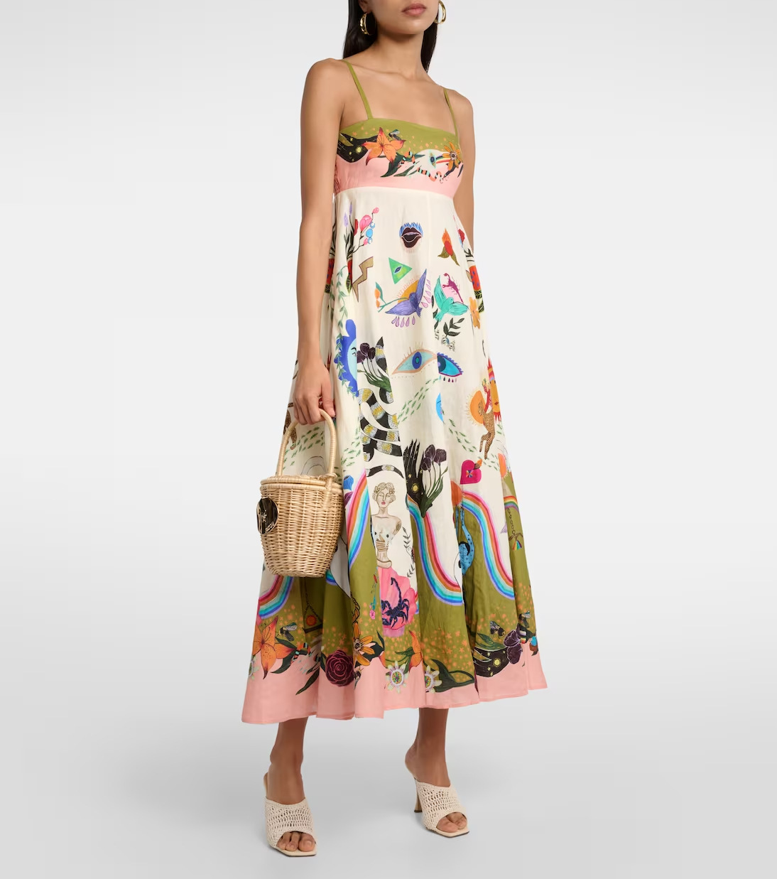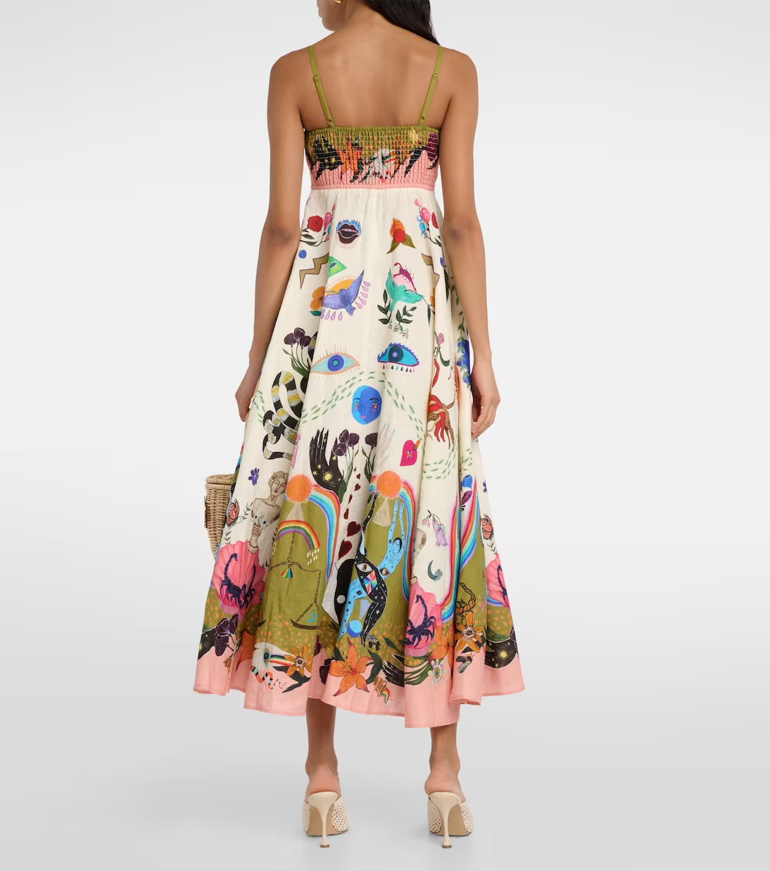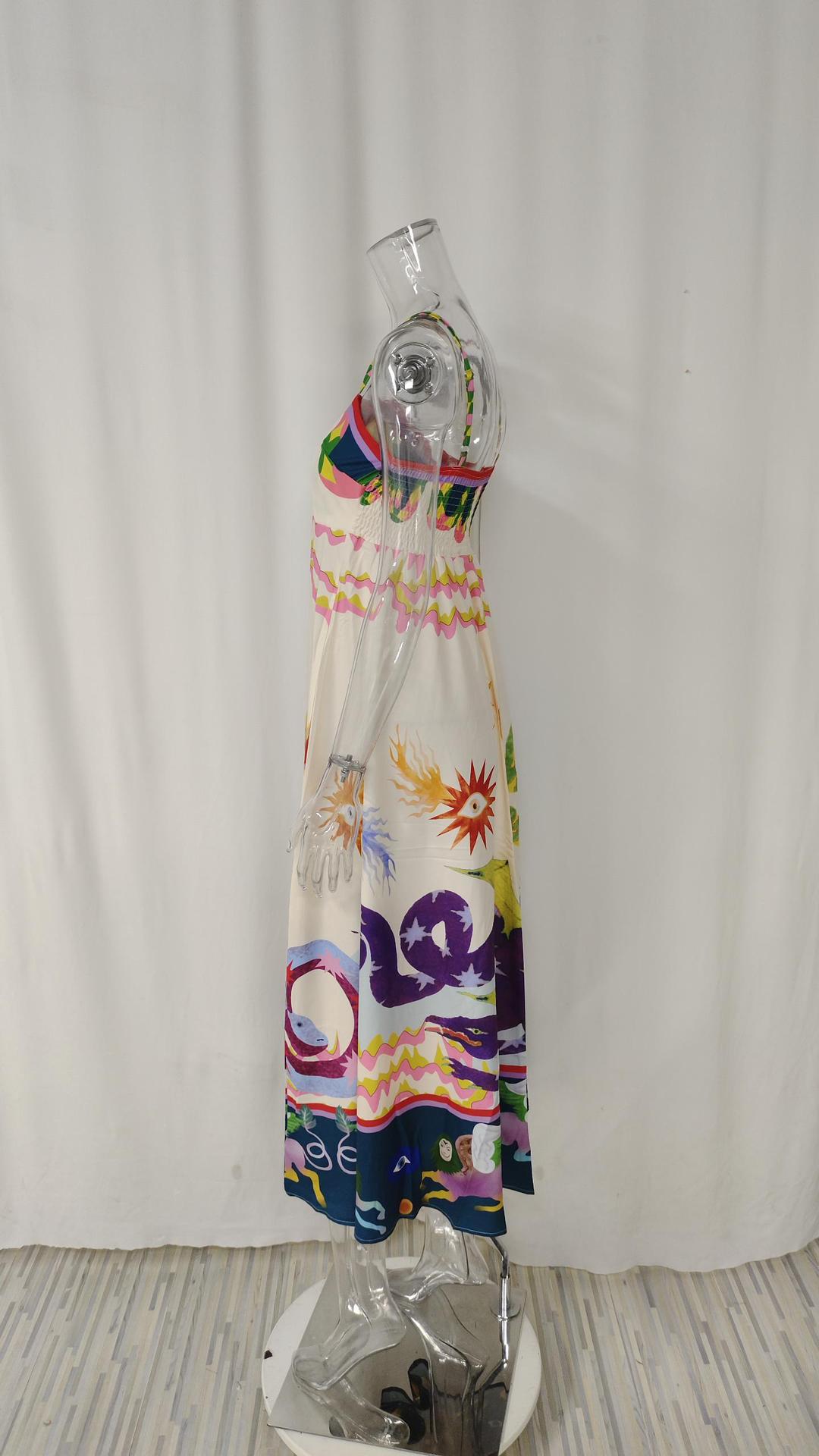 2025년 여름 유럽 및 미국 스타일의 우아한 프린트 민소매 하이웨이스트 롱 원피스