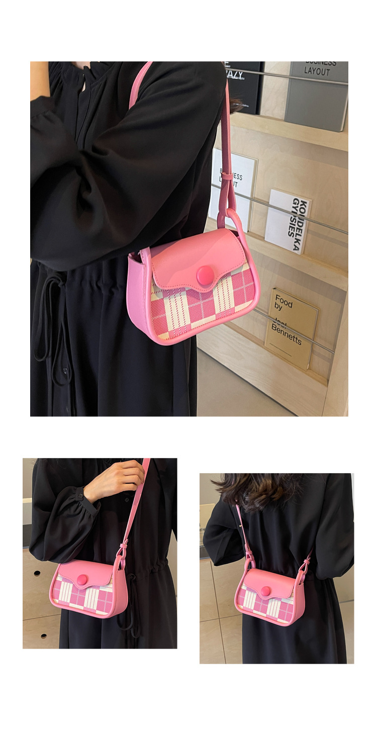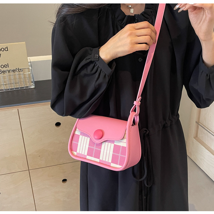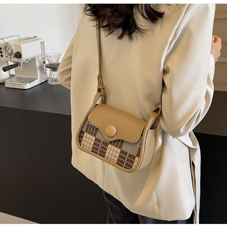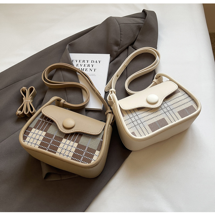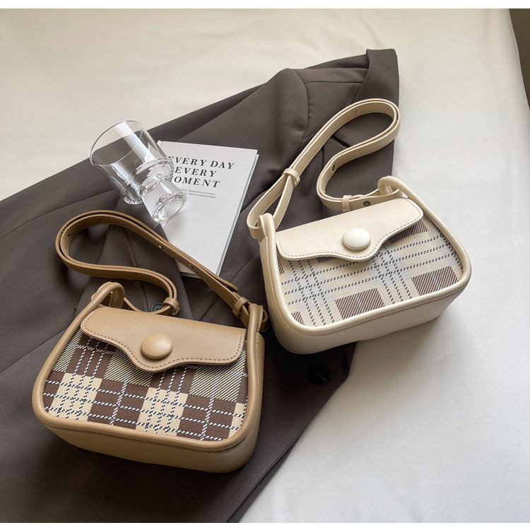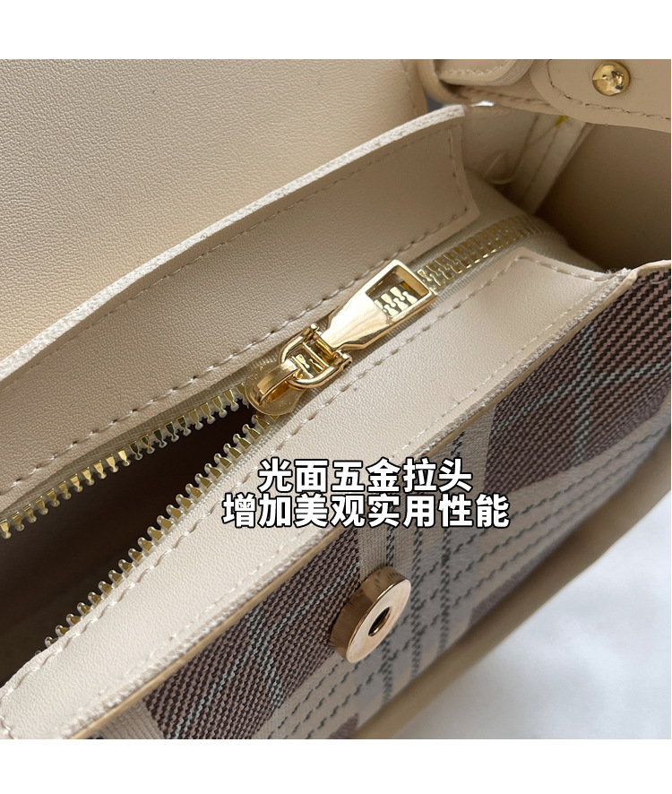 한국 스타일의 패션 휴대용 작은 사각형 가방 간단한 캐주얼 체크 무늬 메신저 가방 2024 여름 새로운 어깨 가방