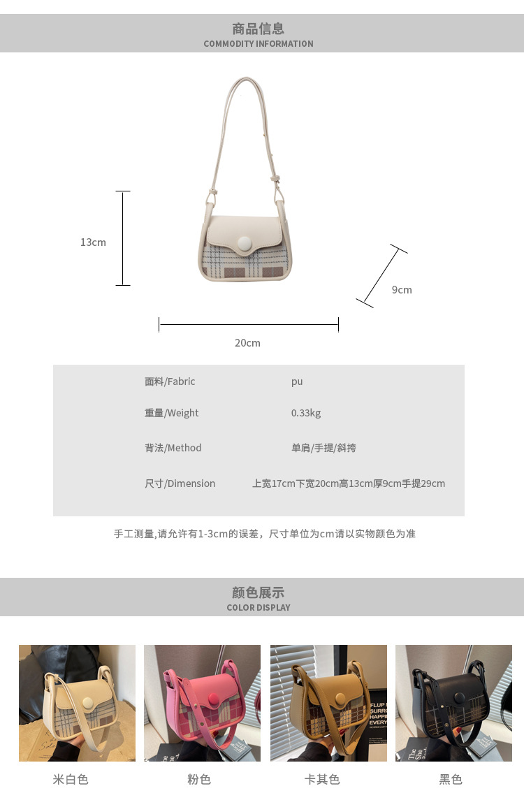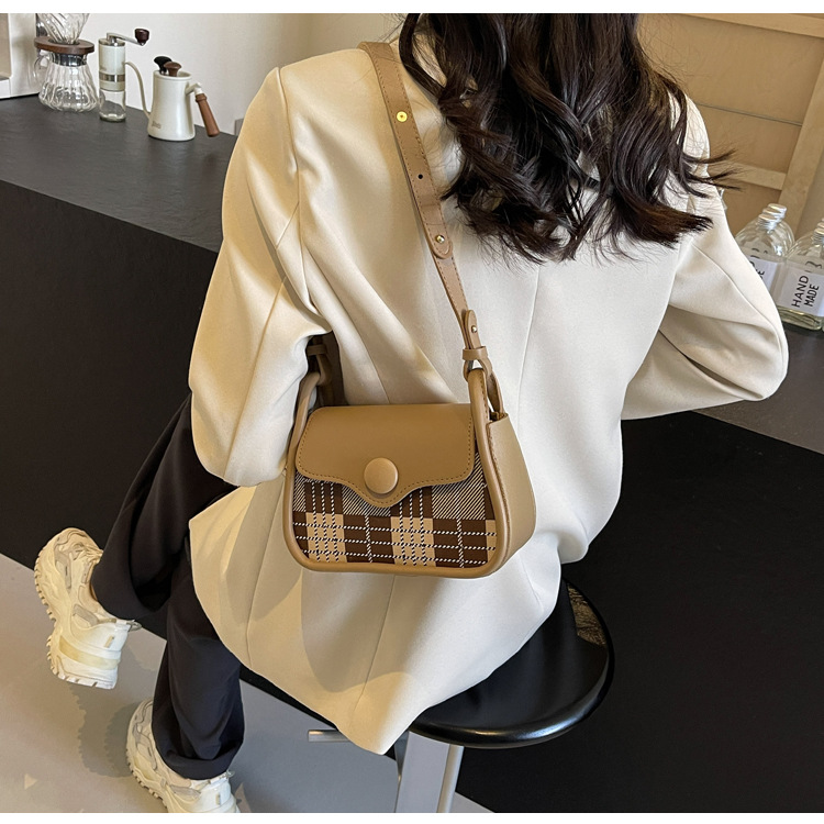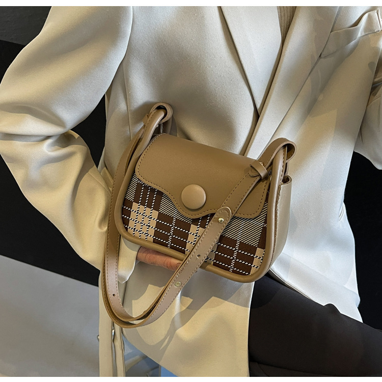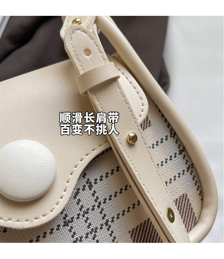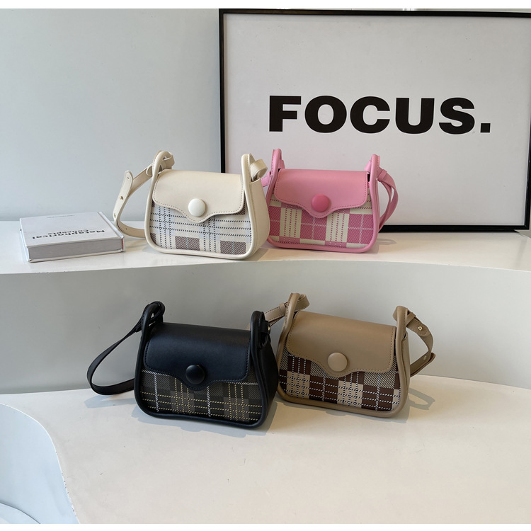 한국 스타일의 패션 휴대용 작은 사각형 가방 간단한 캐주얼 체크 무늬 메신저 가방 2024 여름 새로운 어깨 가방